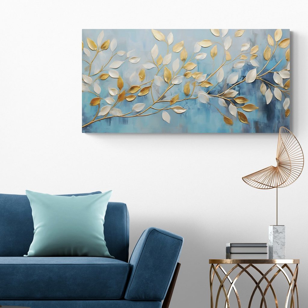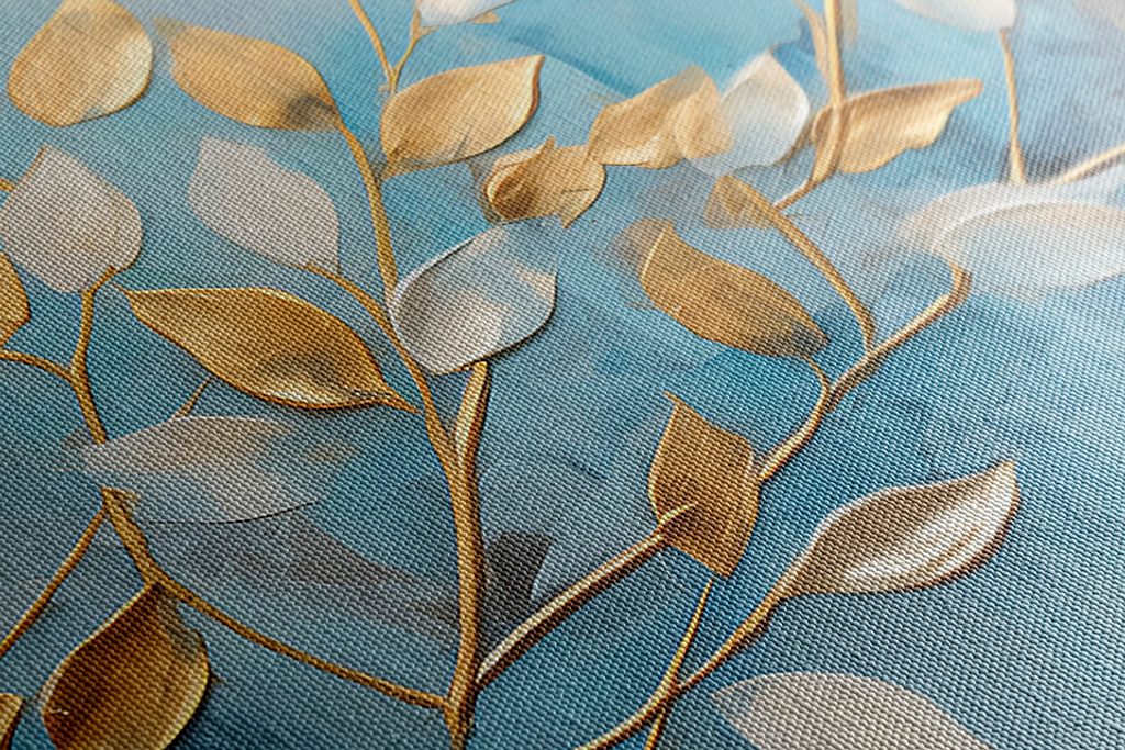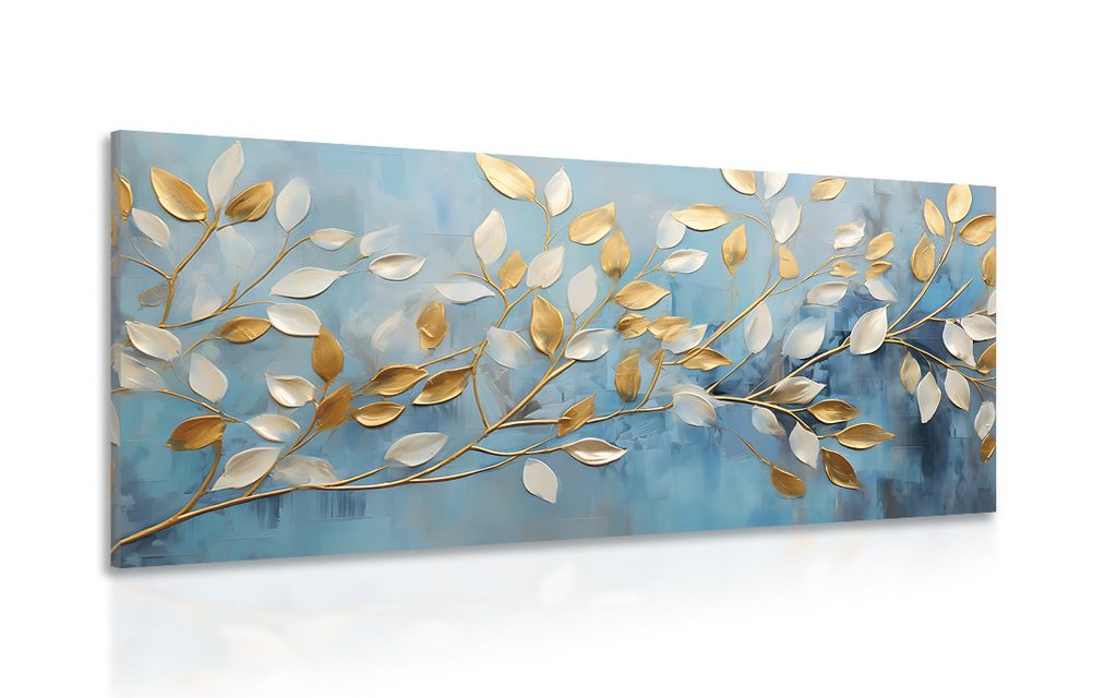 Kép arany-fehér levelek kék háttéren
