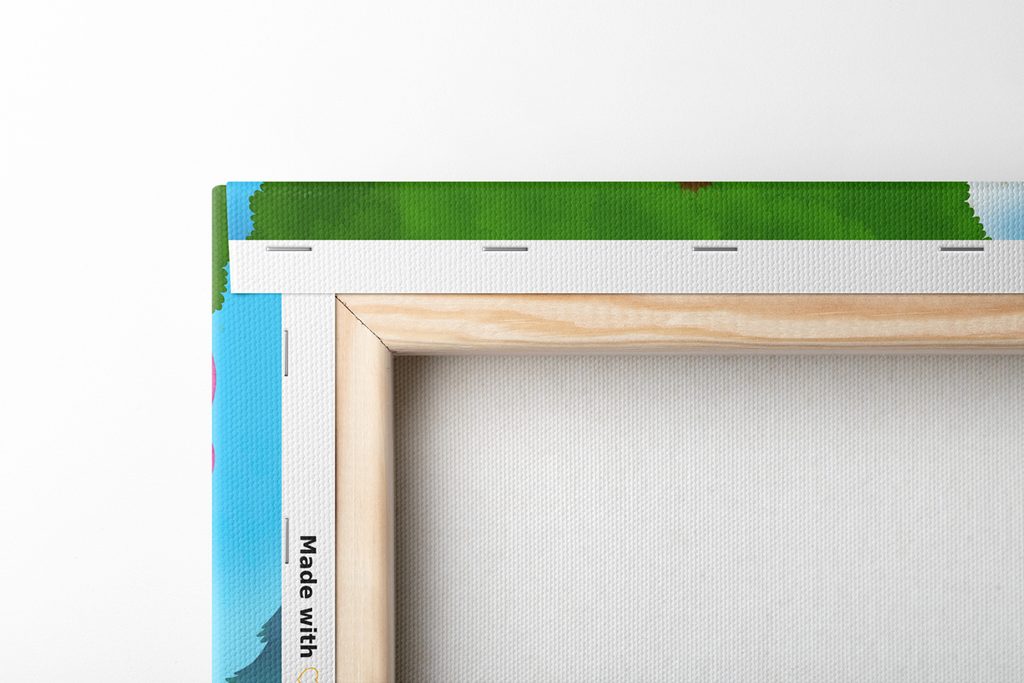 Mivel azt szeretnénk, hogy a falon lévő kép tökéletes legyen, a részletekre koncentrálunk. Ezért a vásznat gondosan ráfeszítik a keretre, amely kiváló minőségű fából készült. A felhasznált keret keretező lécekből készül, amelyek alkalmasak képek készítésére. Ne felejtse el, hogy a hátoldalon sűrűn elhelyezett csatok vannak. A képekkel együtt 1-2 db akasztót kap, melyek a választott kép méretétől függően a hátoldalra kerülnek. A 120 cm-nél nagyobb szélességű képeknél egy fa válaszfalat helyeznek be a keret megerősítésére.