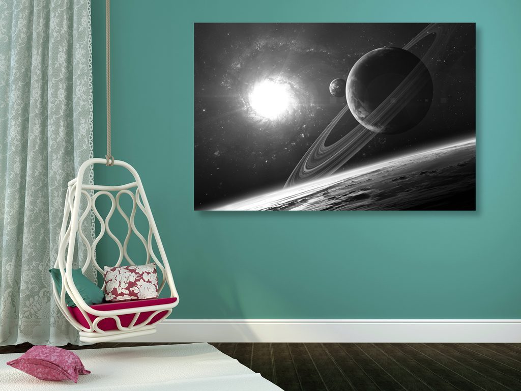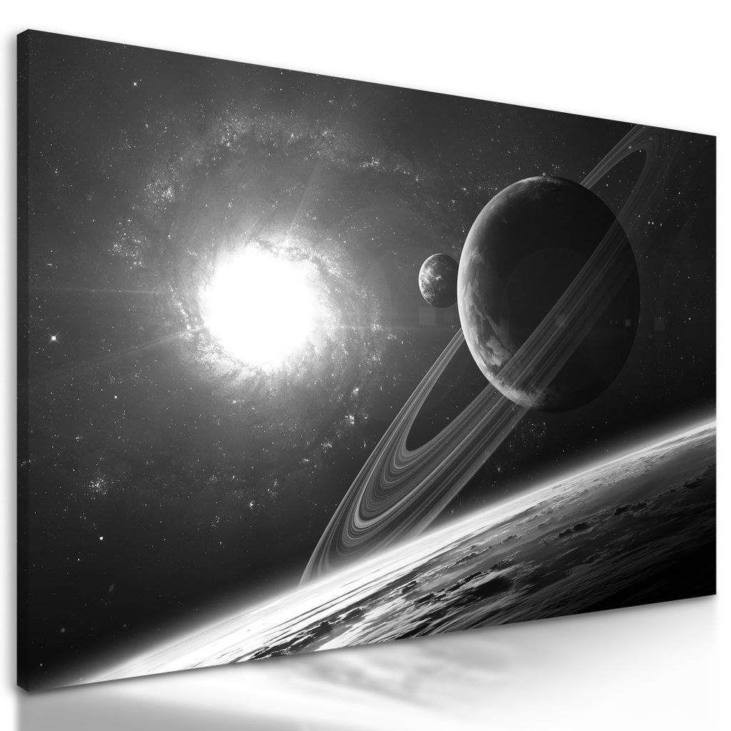 Kép bolygó a titokzatos világűrben fekete-fehér kivitelben