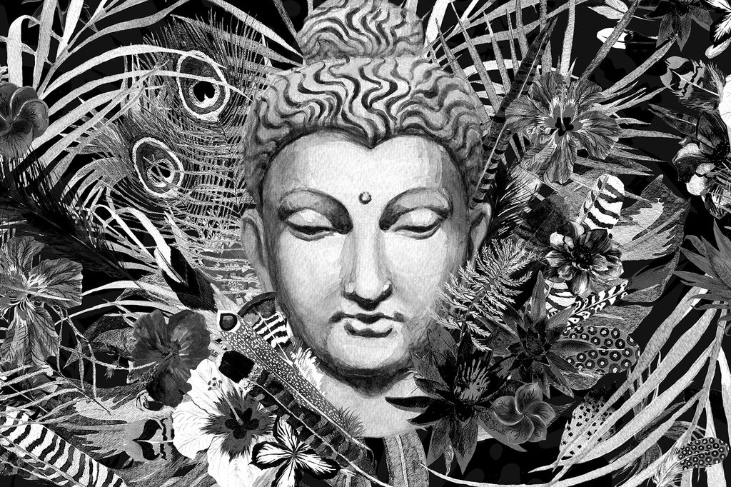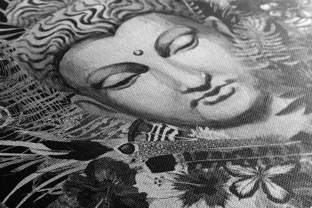 Kép Buddha a trópusi dzsungelben fekete-fehér kivitelben