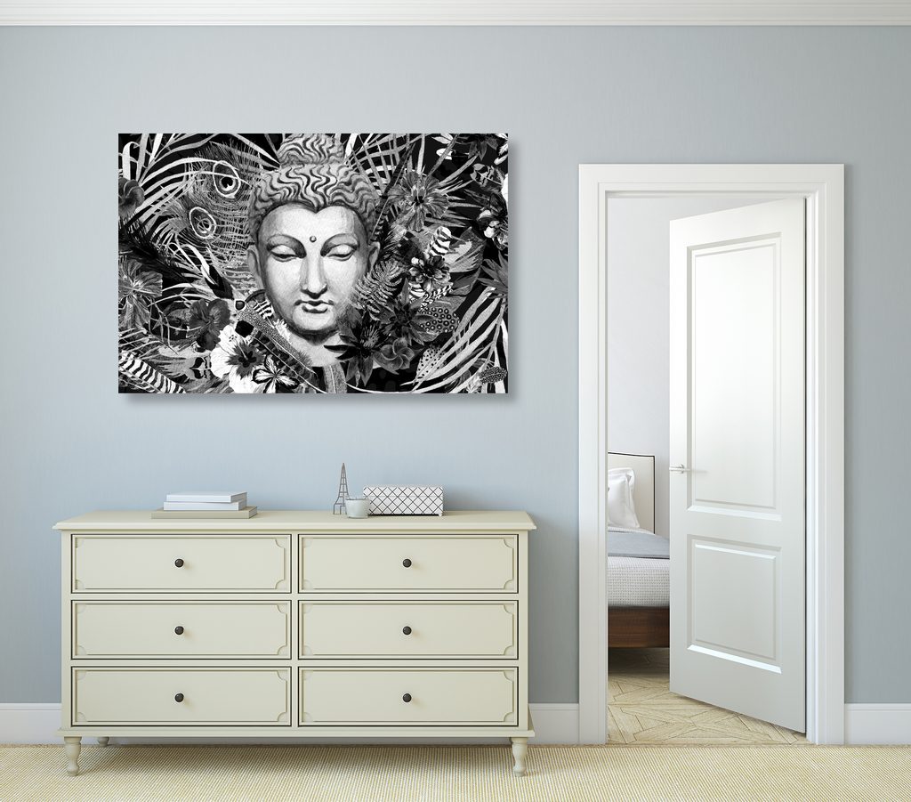 Kép Buddha a tudás hegyén fekete-fehér kivitelben