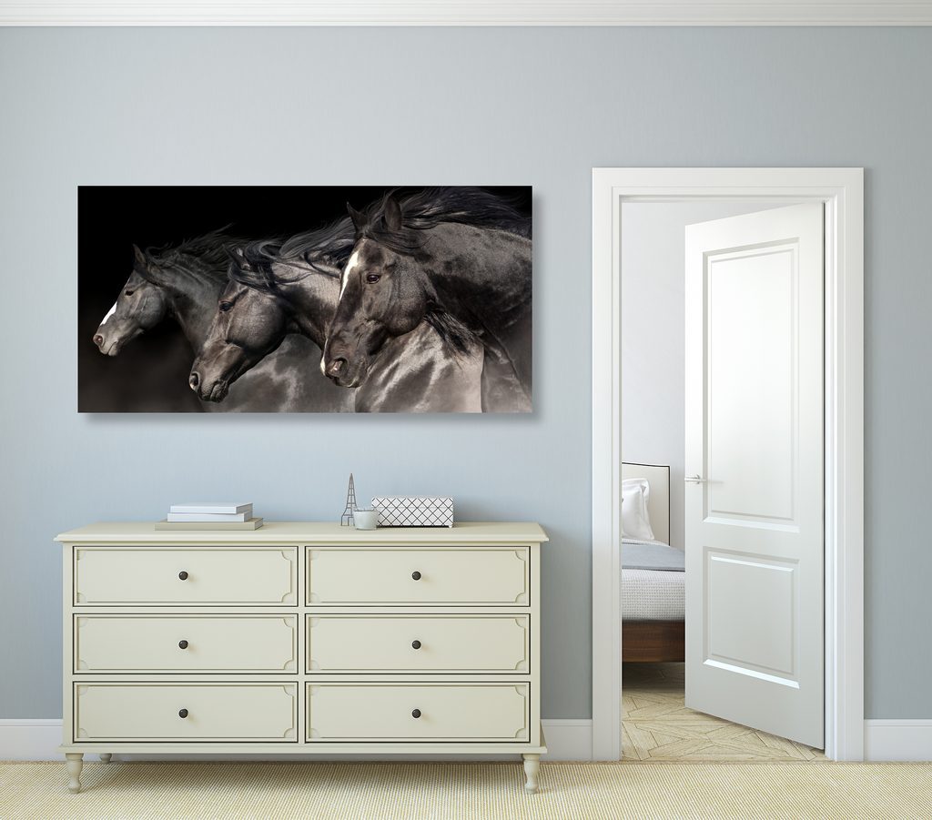 5 részes kép vízben gázoló lovak