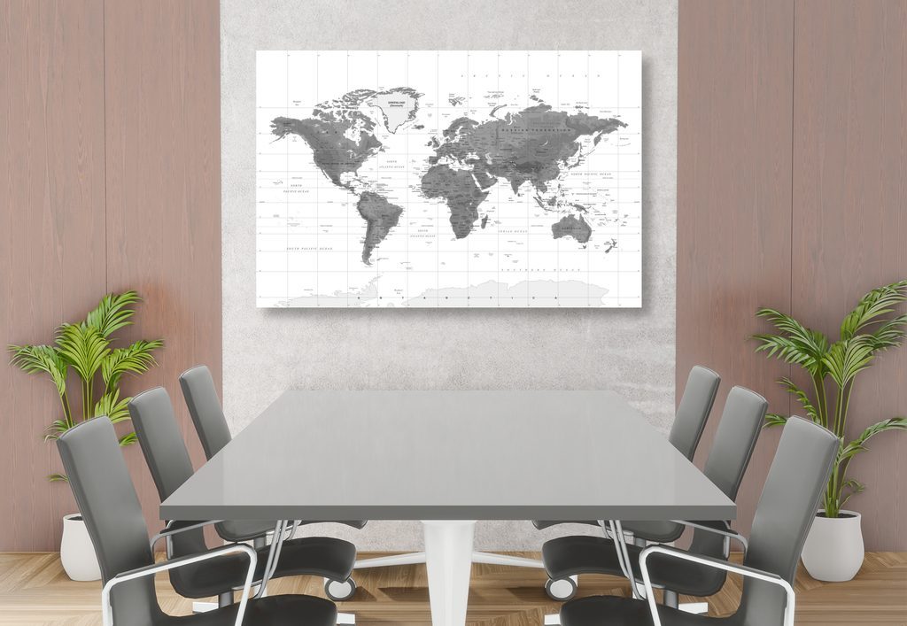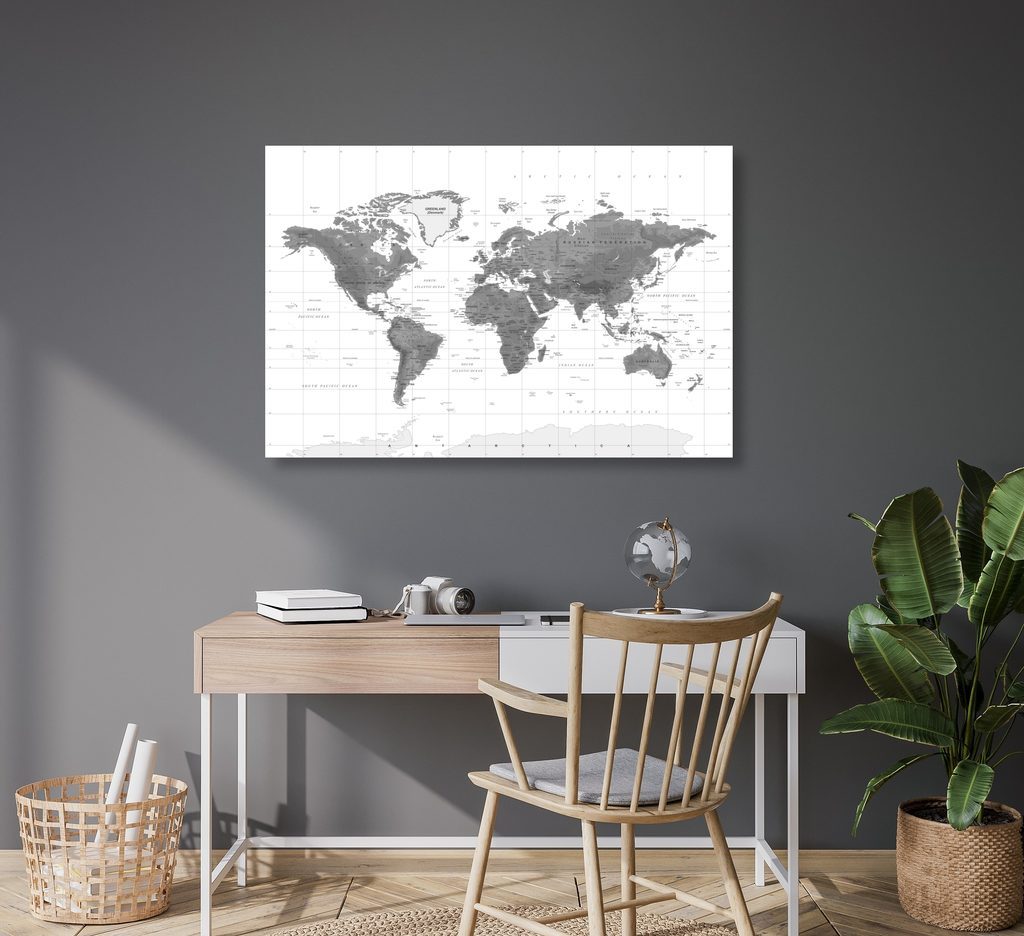 Kép csodálatos világtérkép fekete-fehér kivitelben