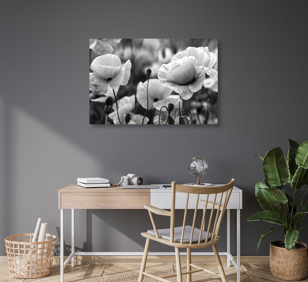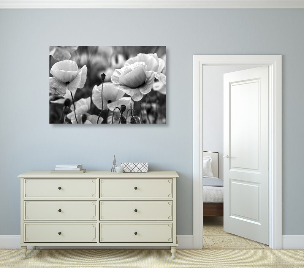 Kép egyedi vad pipacsok fekete-fehér kivitelben