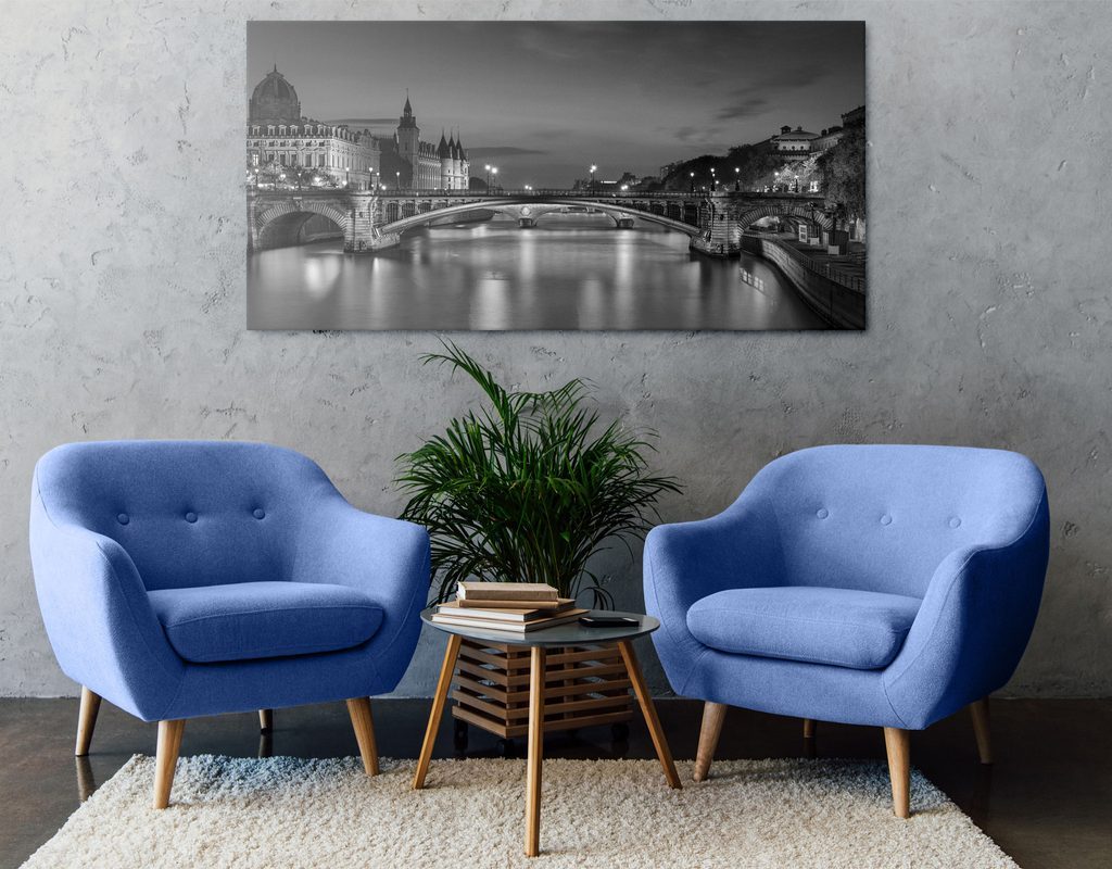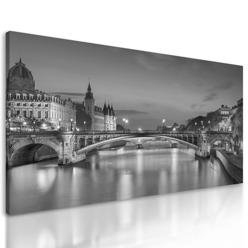 Kép elbűvölő éjjeli Párizs fekete-fehér kivitelben