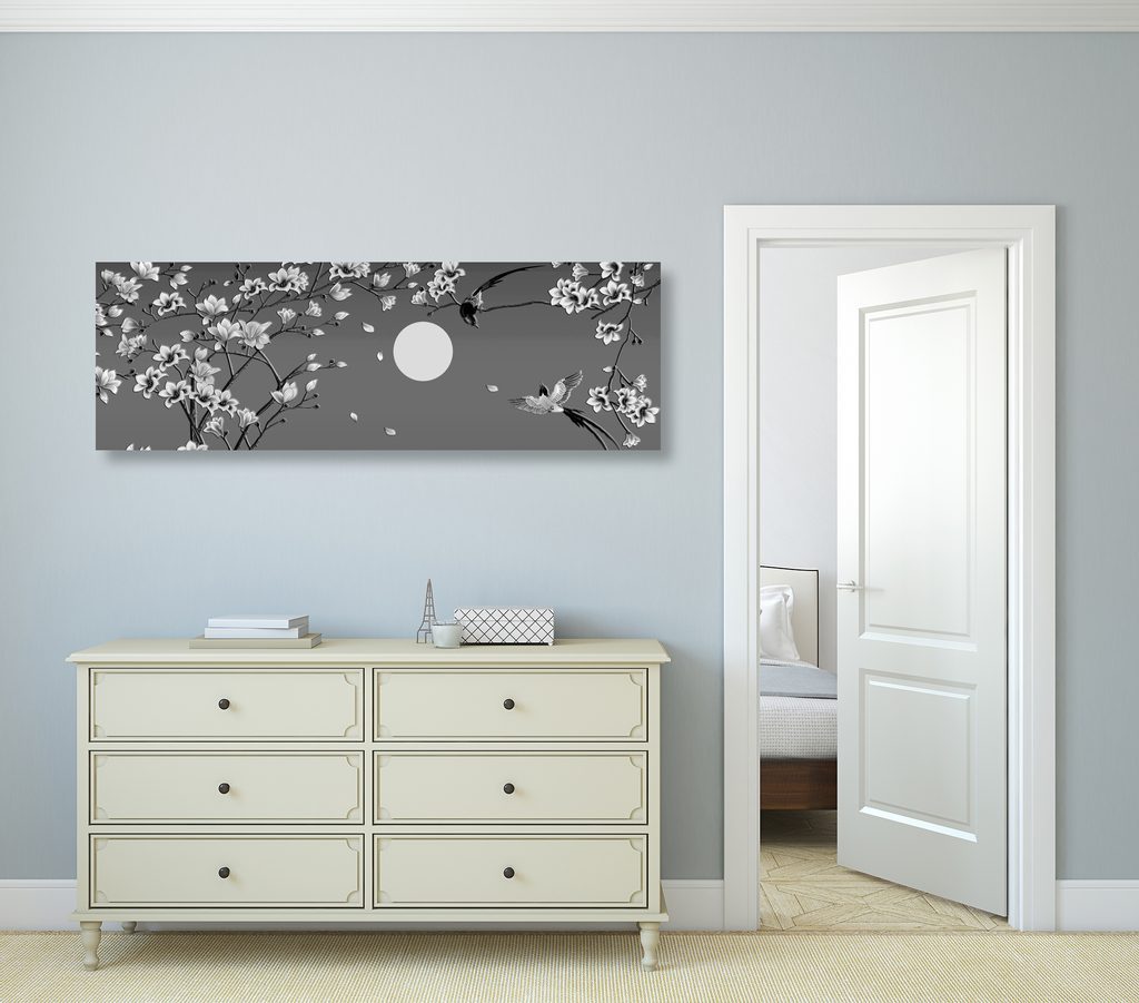 Kép orchideák lágy ábrázolása fekete-fehér kivitelben