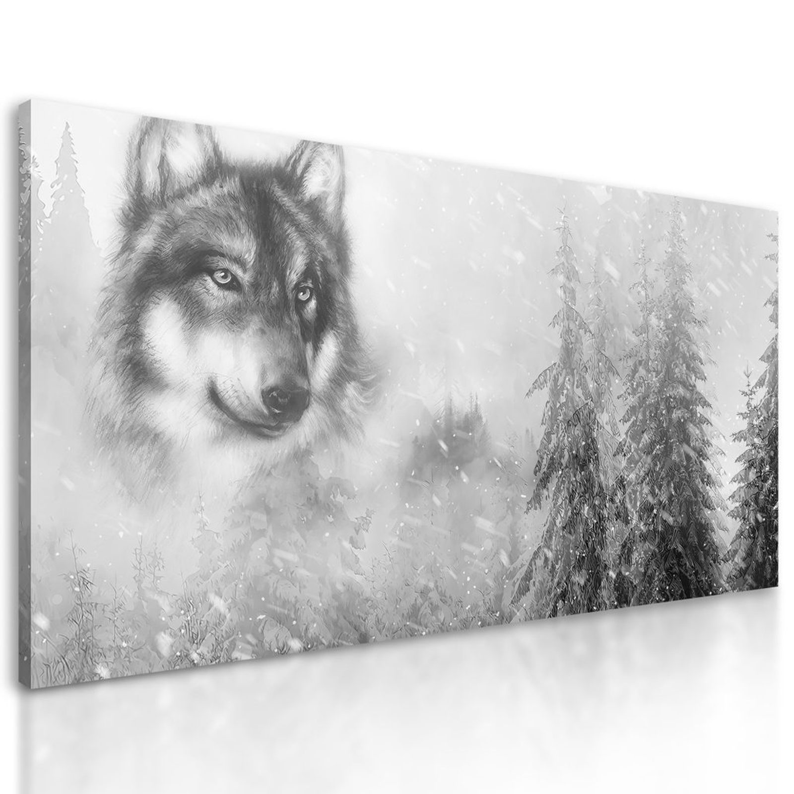 Kép farkas portréja fekete-fehér kivitelben