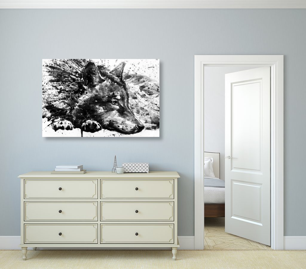 Kép fekete-fehér farkas művészi kivitelben