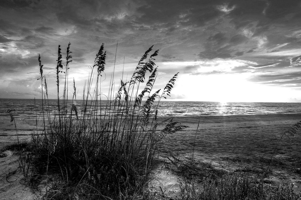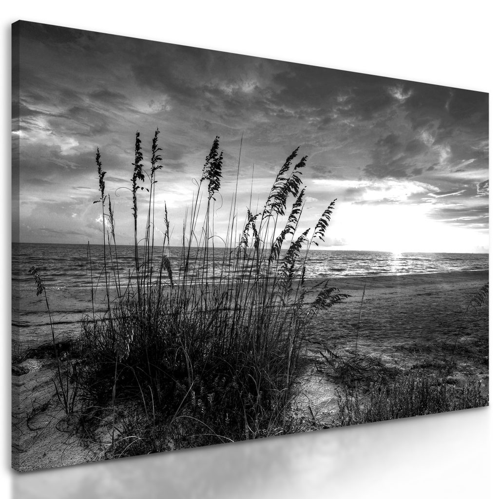 Kép fekete-fehér naplemente a partról