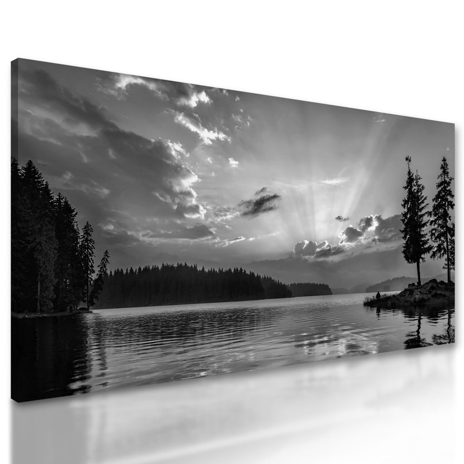 Kép fenséges hegyek tóval fekete-fehér kivitelben