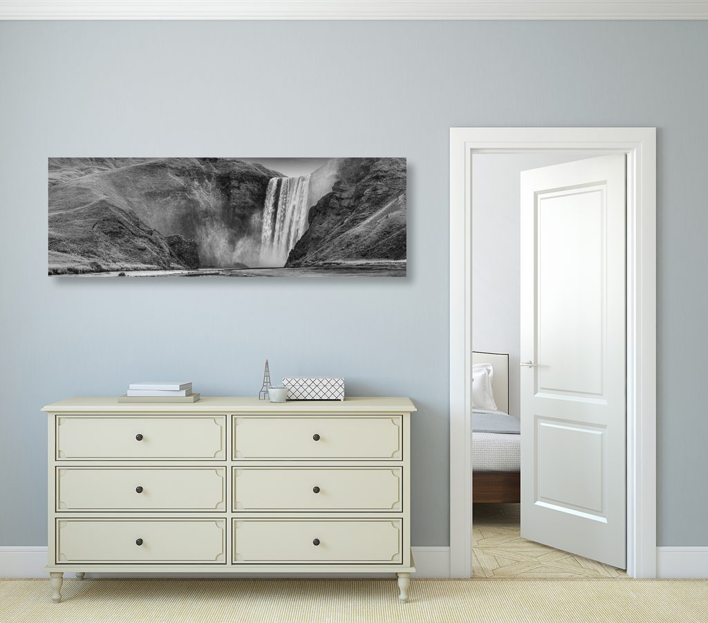 Kép fenséges vízesés Izlandon fekete-fehér kivitelben