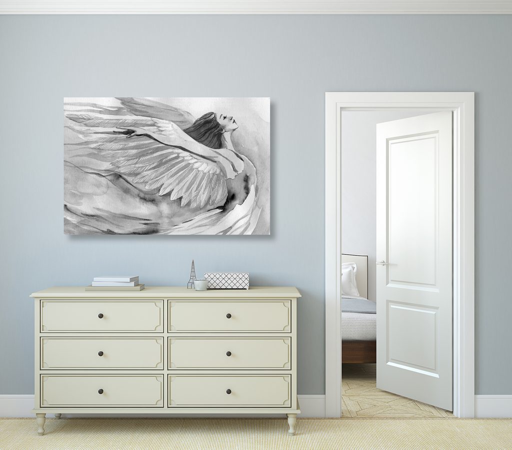 Kép gyönyörű angyal szabadsága fekete-fehér kivitelben