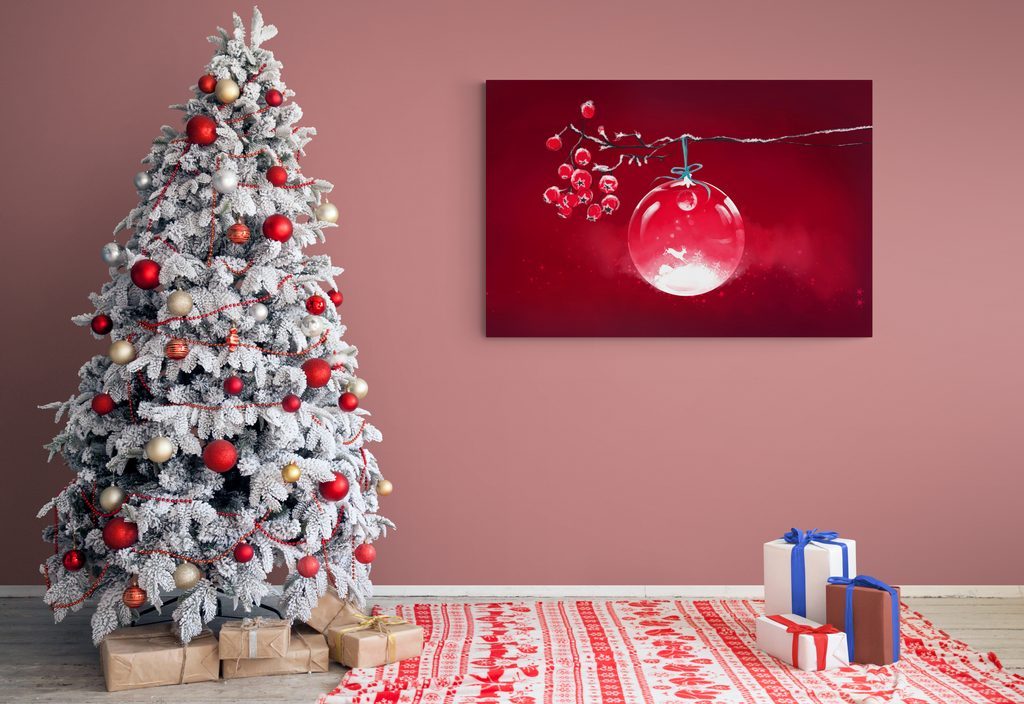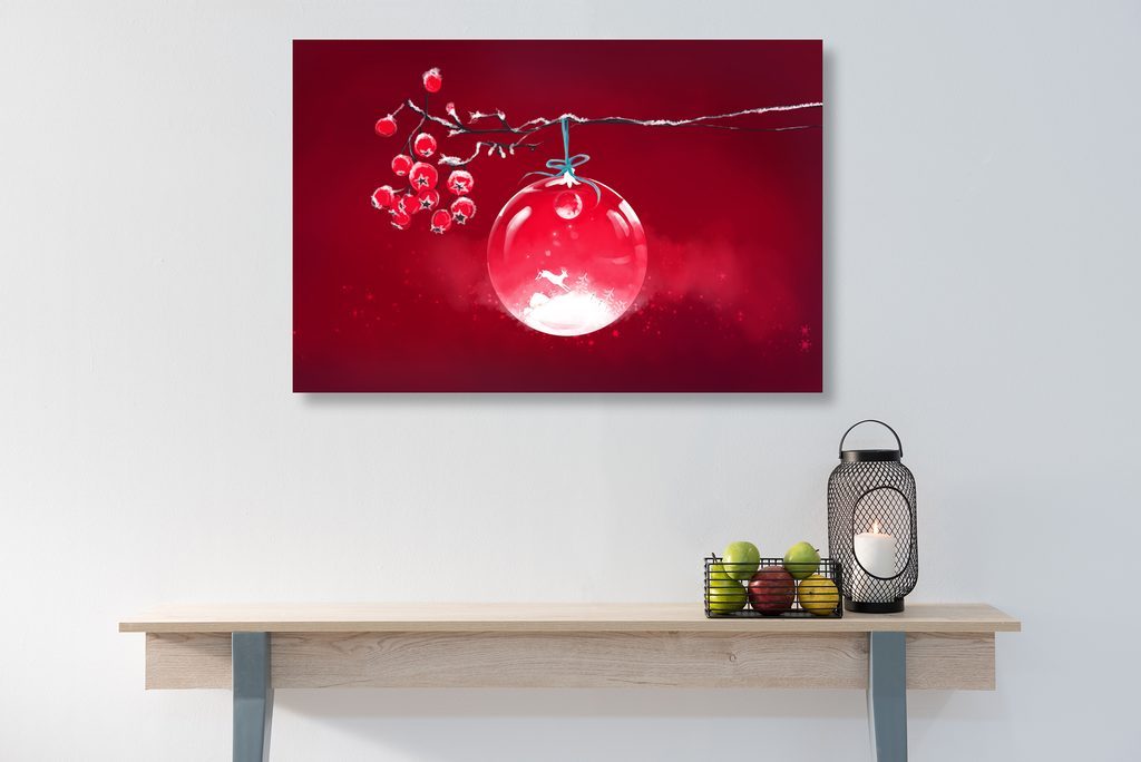 Kép gyönyörű karácsonyi gömb piros háttéren