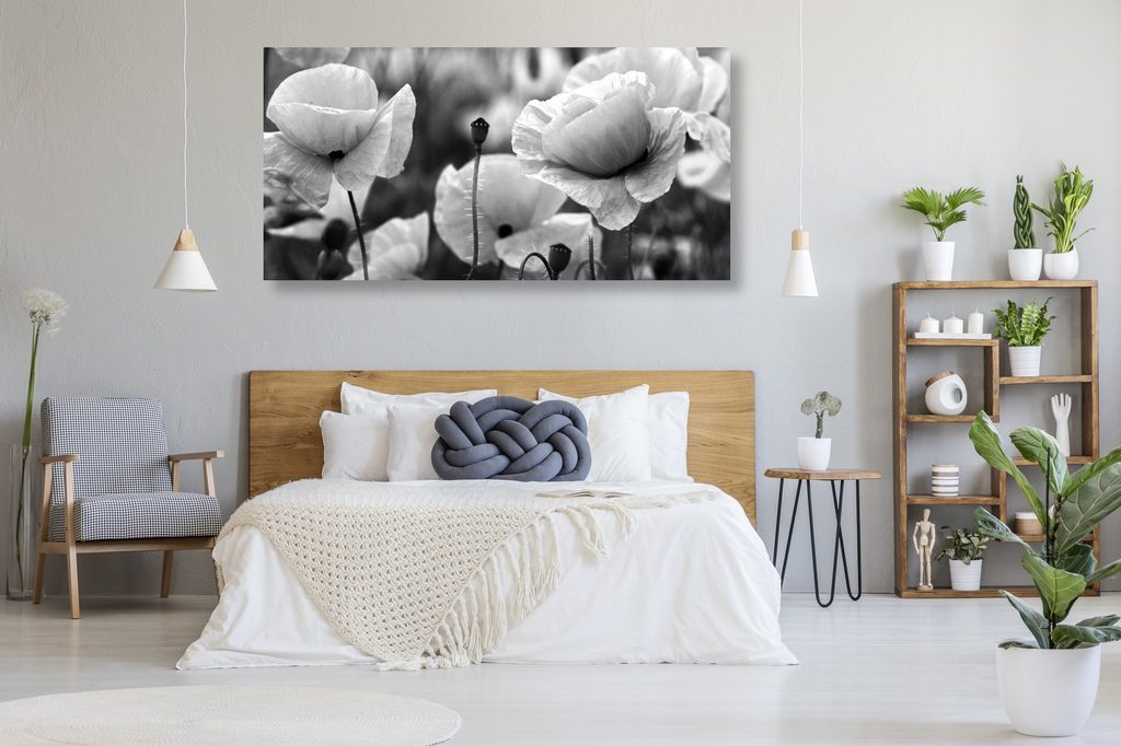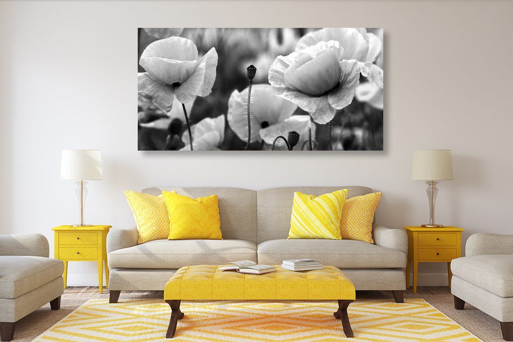 Kép gyönyörű pipacsmező fekete-fehér kivitelben