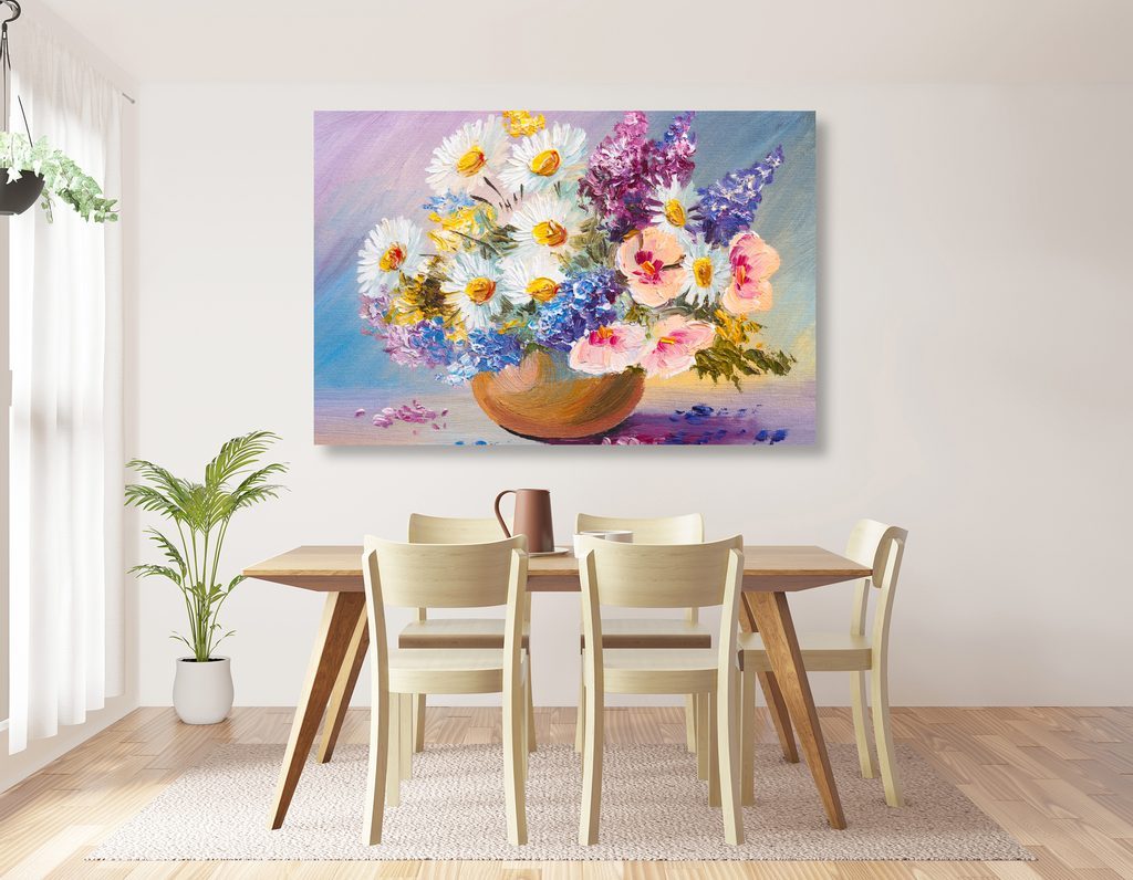 Kép gyönyörű virágokkal teli váza olajfestménye