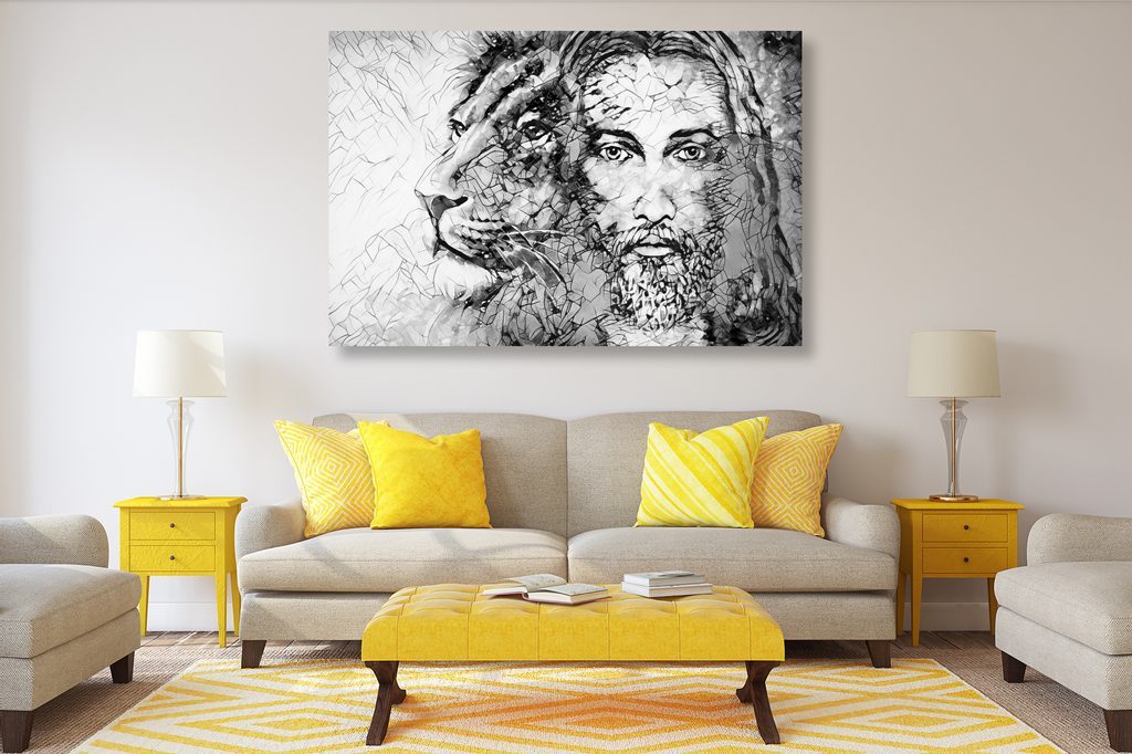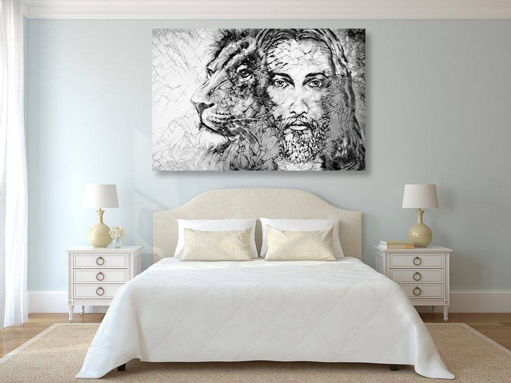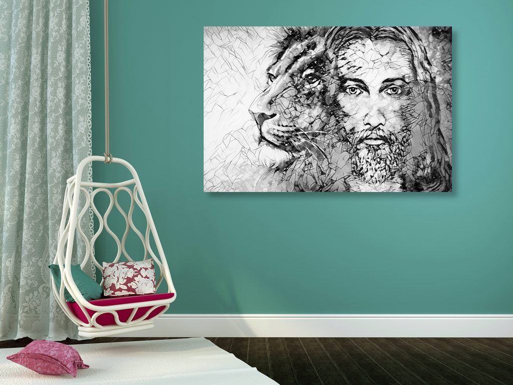 Kép Jézus az állatok királyával fekete-fehér kivitelben
