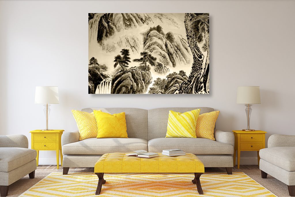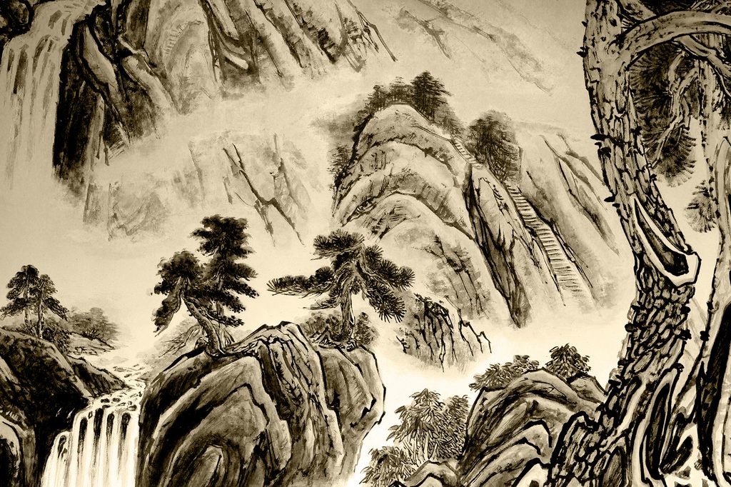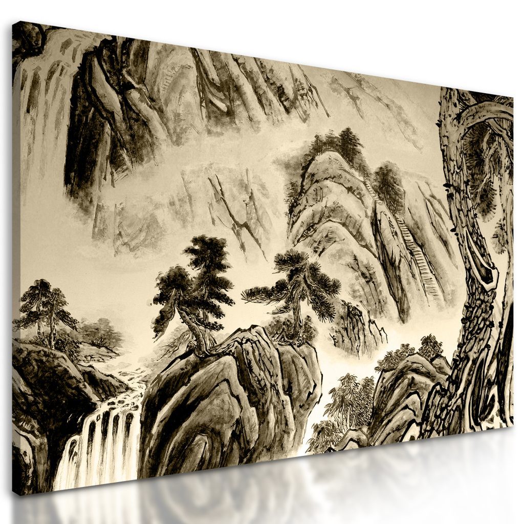 Kép kínai természet festménye szépia kivitelben