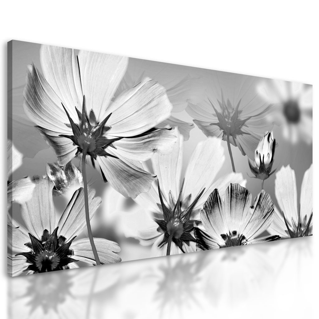 Kép kivirágzott virágokkal teli kert fekete-fehér kivitelben