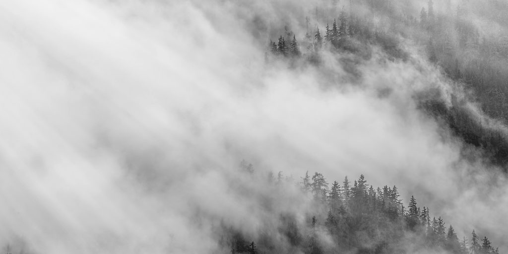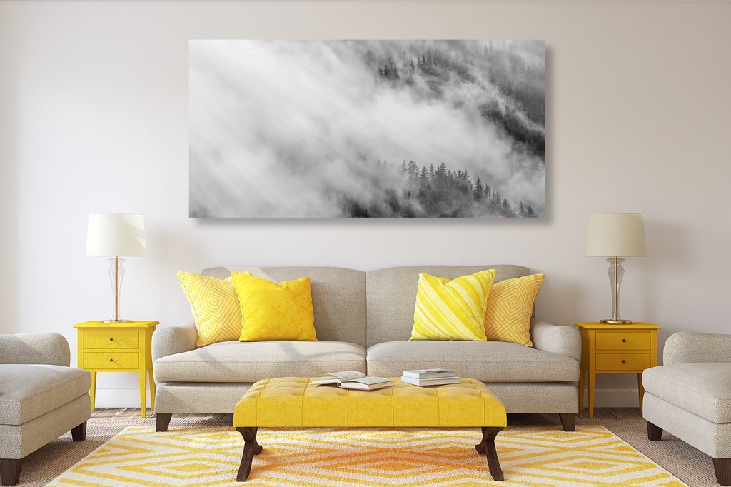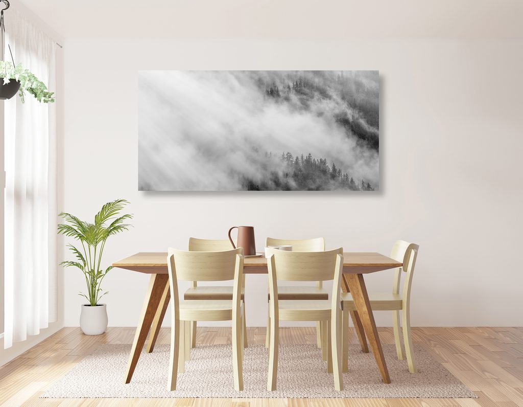 Kép köd az erdő felett fekete-fehér kivitelben