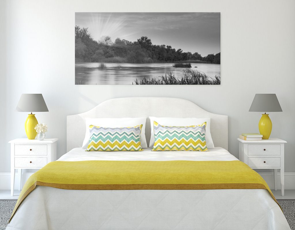 Kép napsugarak a tó felett fekete-fehér kivitelben