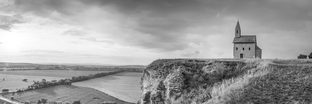 Kép nyitrai templom a sziklán fekete-fehér kivitelben