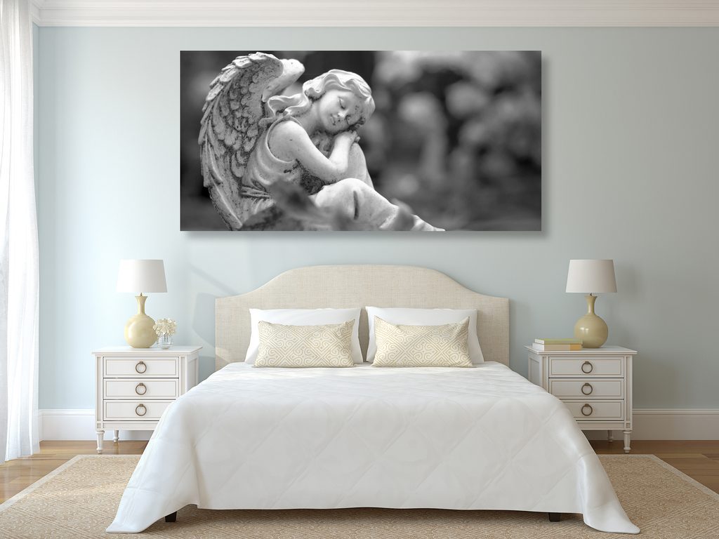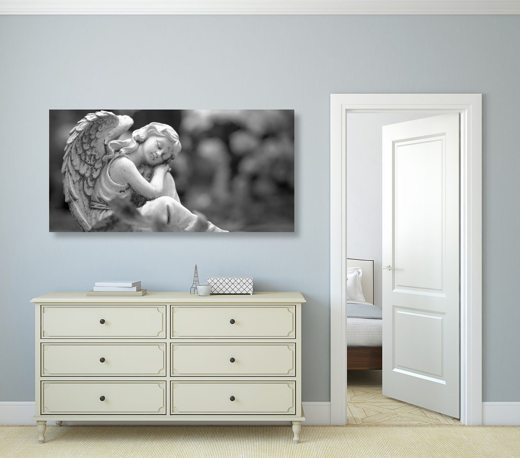Kép angyal fekete-fehér szárnyai absztrakt háttéren