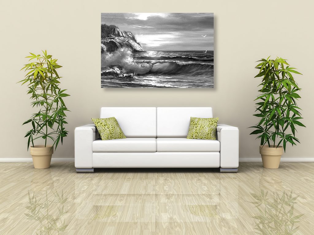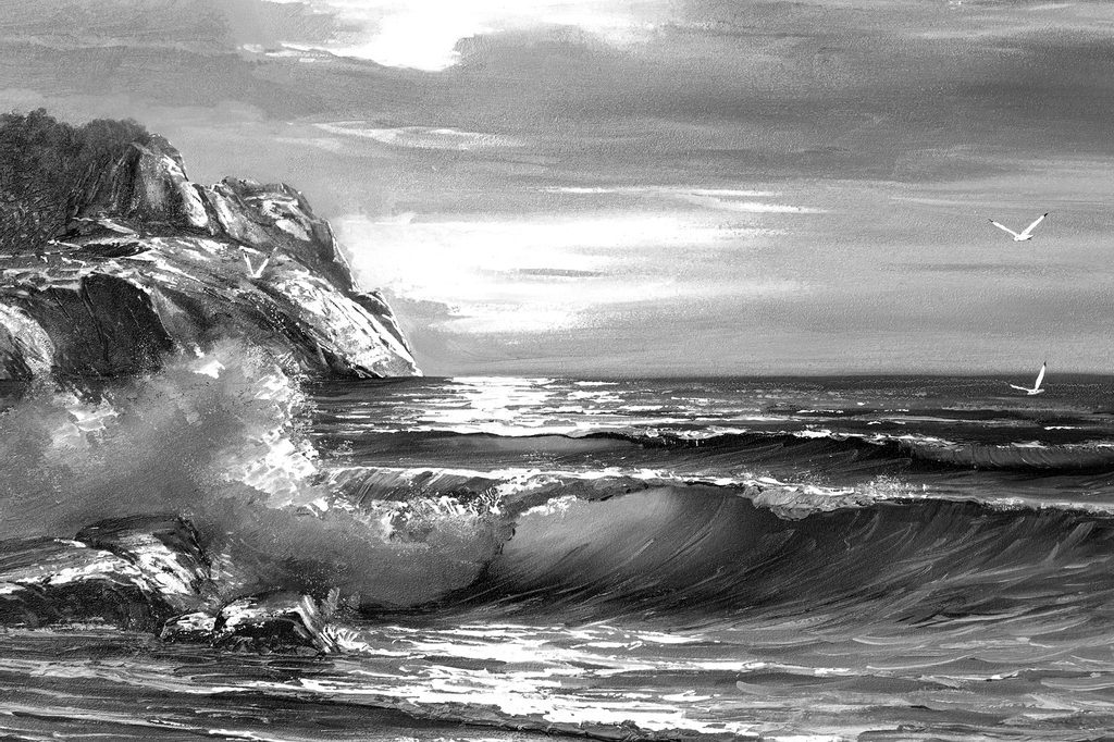 Kép nyugtalan tenger fekete-fehér kivitelben