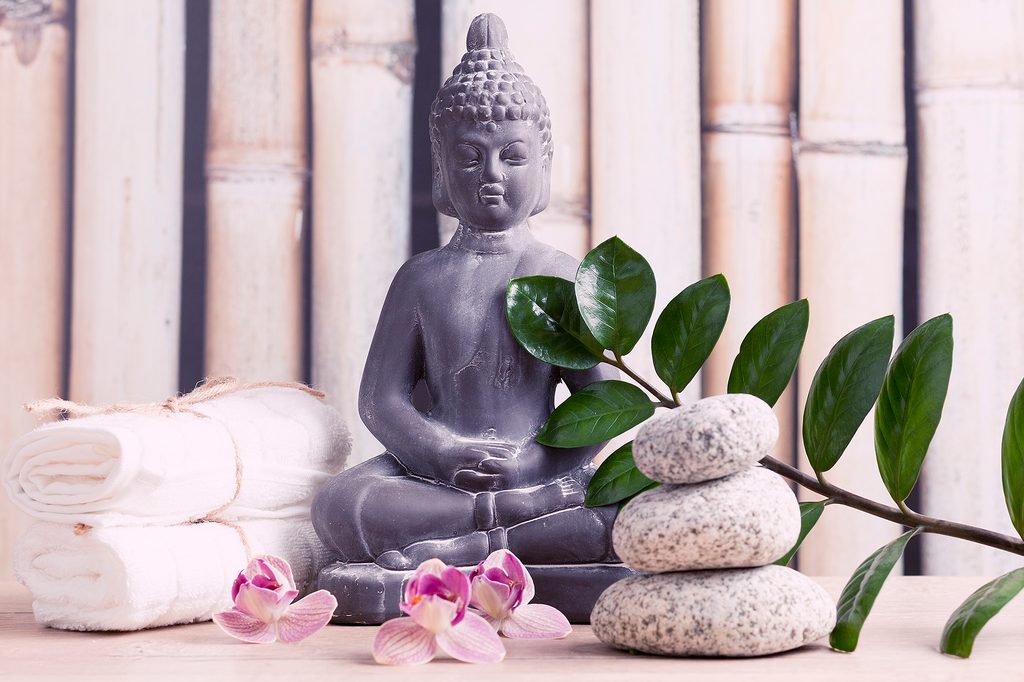 Kép fekete-fehér Buddha szobor Zen csendéletben