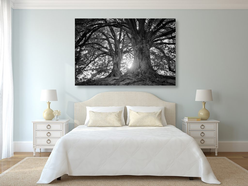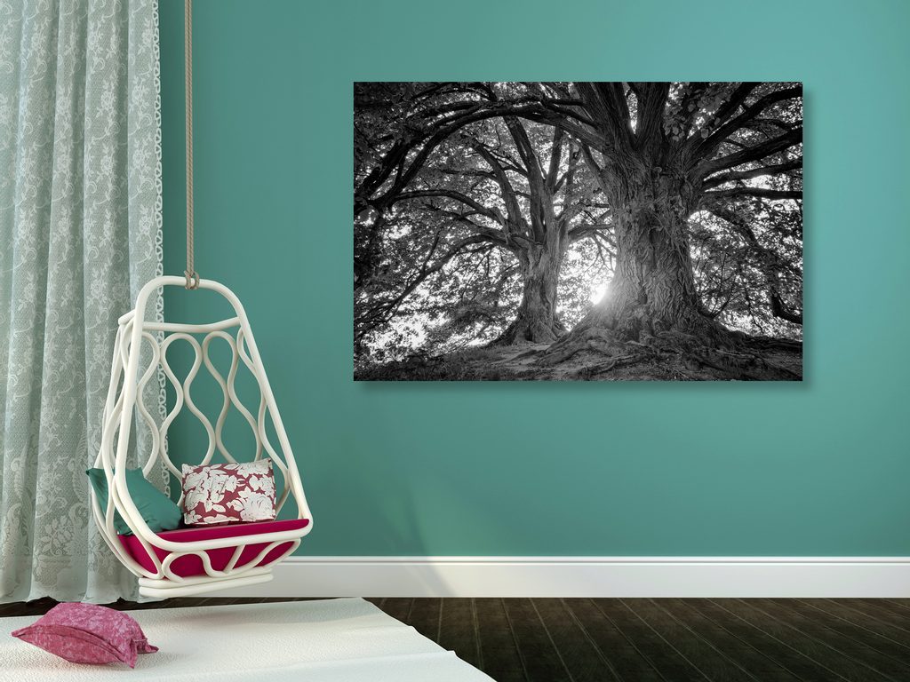 Kép öreg fák fekete-fehér kivitelben