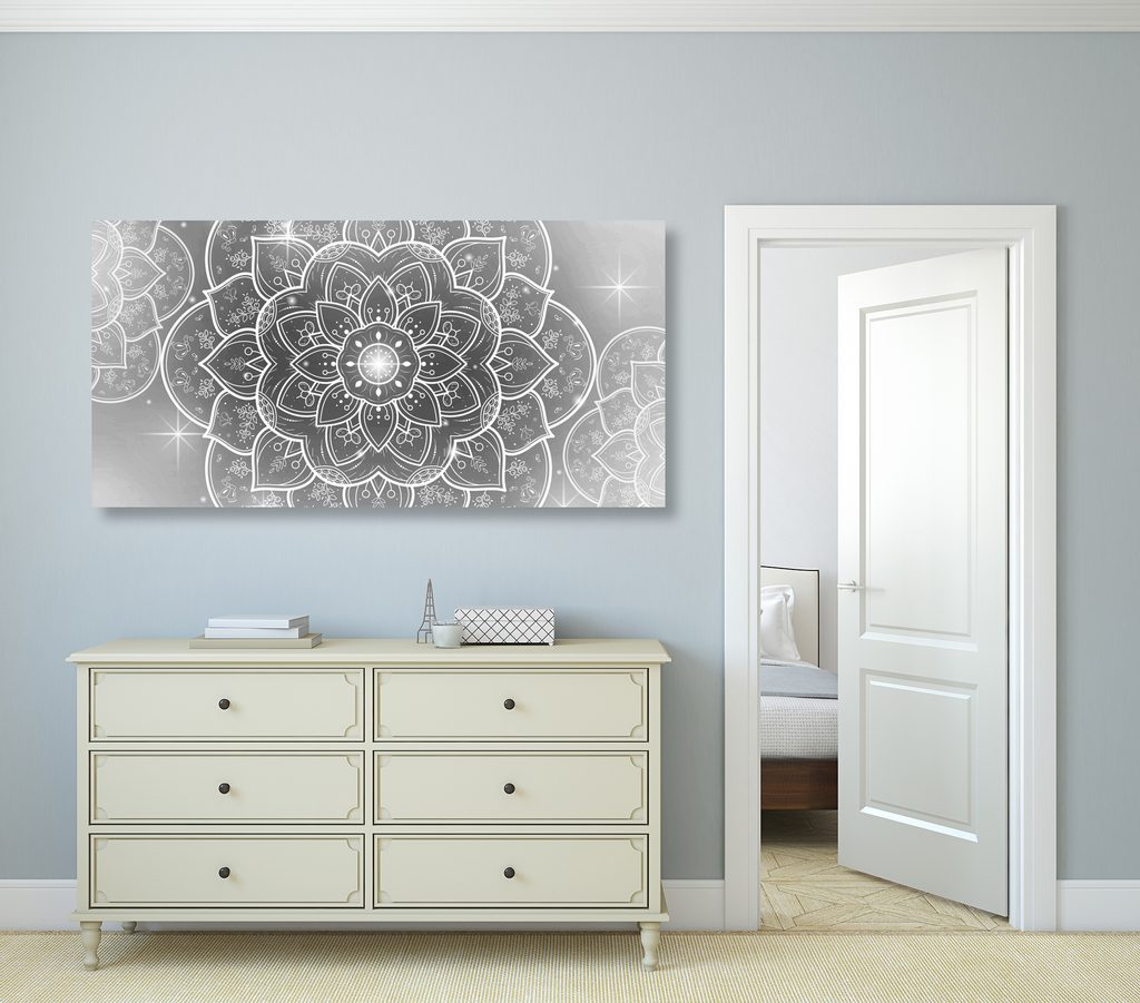 Kép elbűvölő Mandala fekete-fehér kivitelben