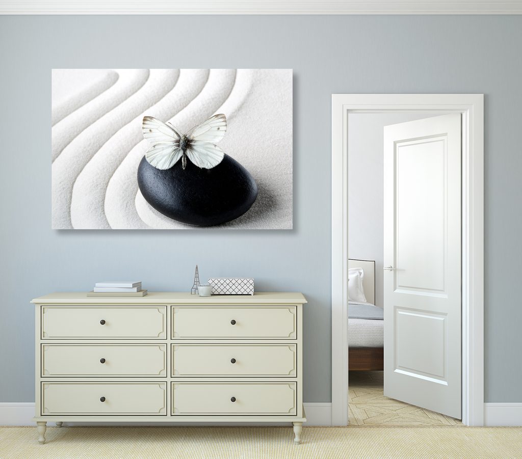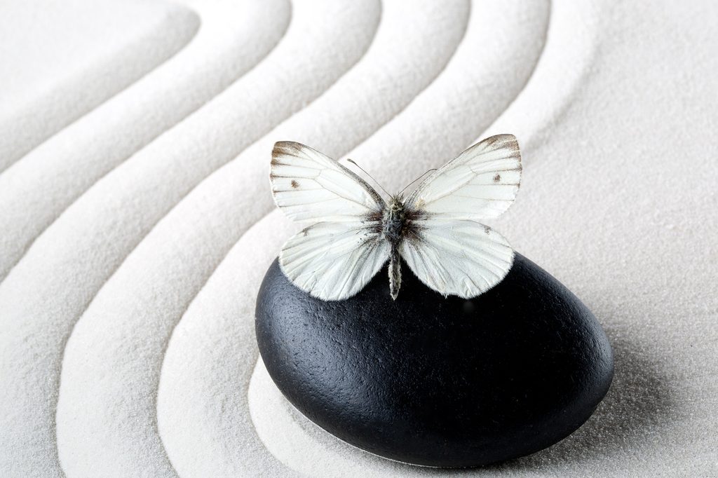 Kép pillangó és a fekete kő harmóniája