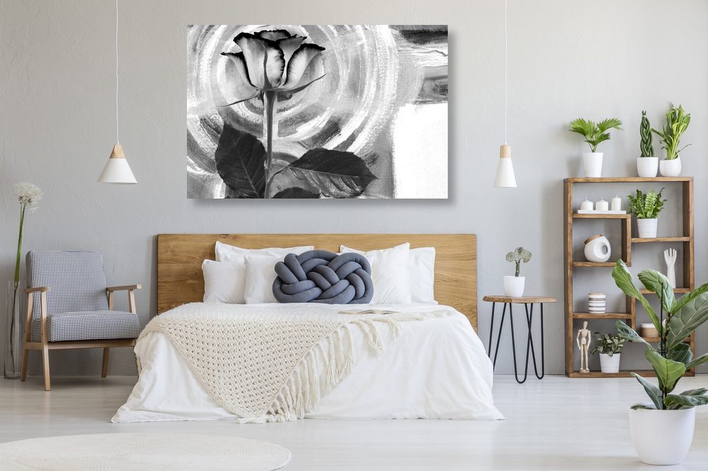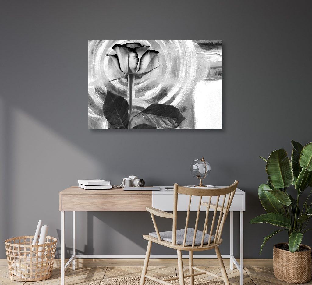 Kép rózsa festett háttéren fekete-fehér kivitelben