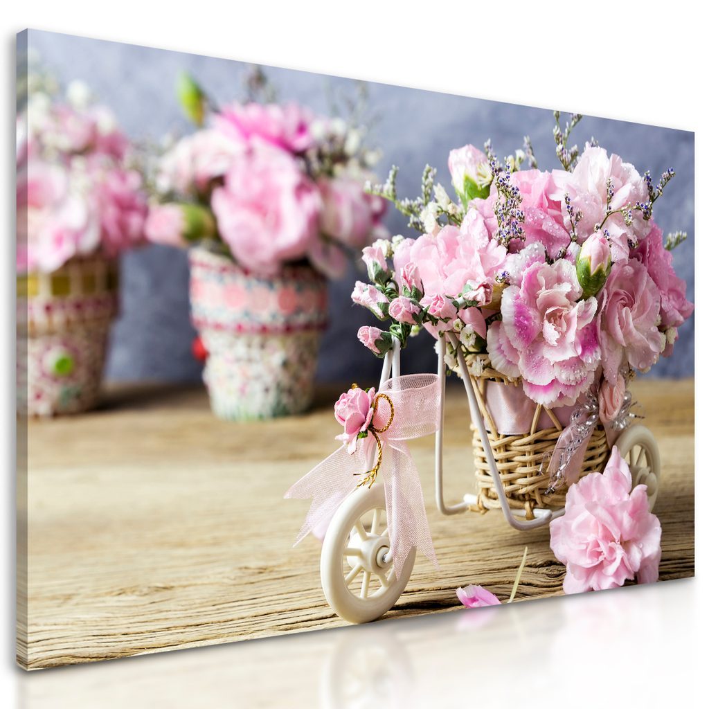 Kép mozaikos cserép rózsaszín szegfű virágokkal