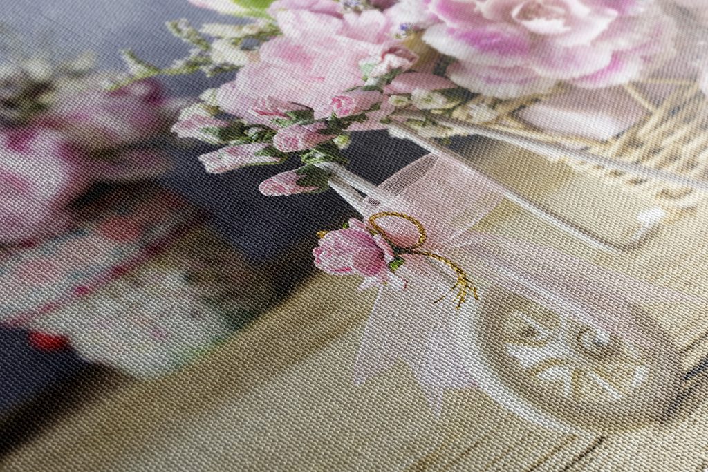 Kép madárka és pünkösdi rózsa vintage kivitelben