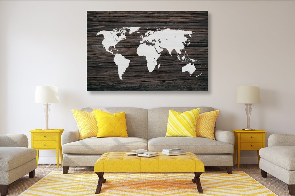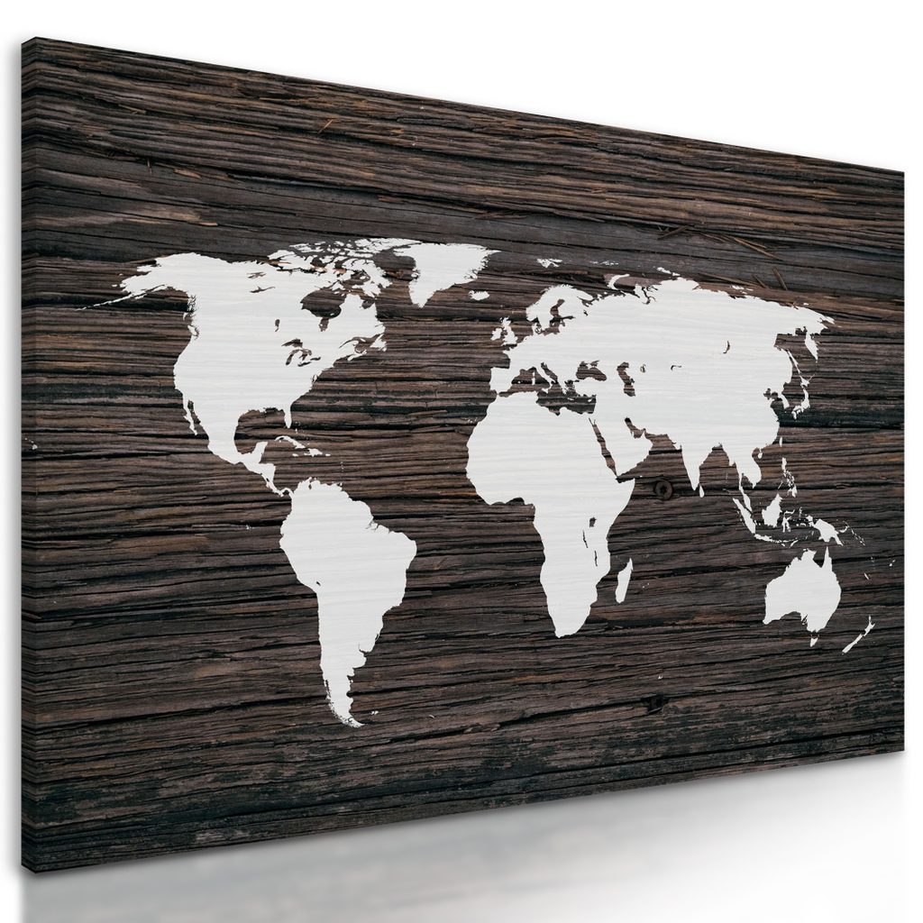 5 részes kép világtérkép fa alapon
