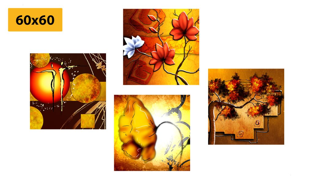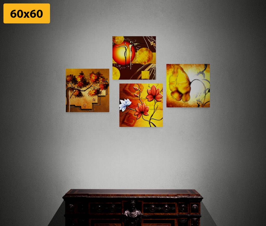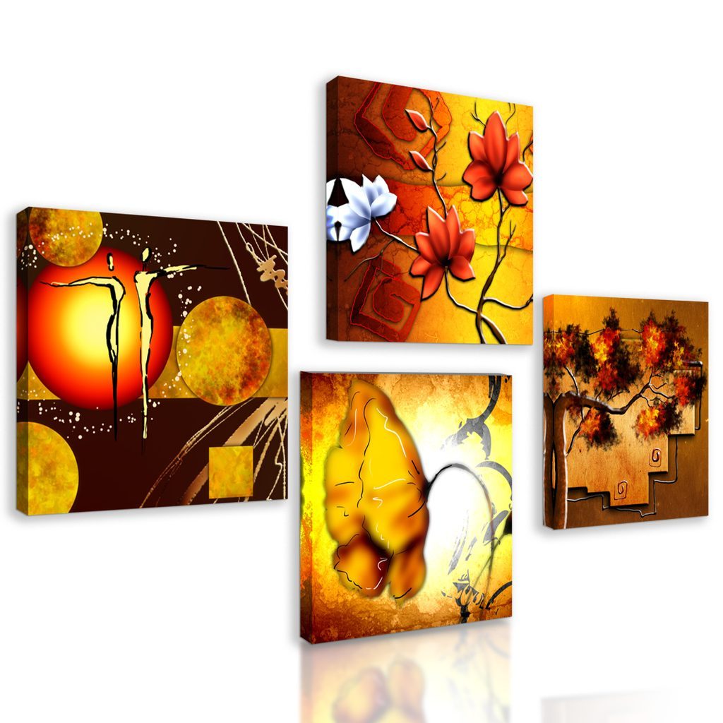 USP előnyök szettek Könnyű telepítés, Elhelyezhető saját elképzelés alapján, Négy kép hasonló árnyalatban és motívumokkal, Prémium vászon 280 g/m²