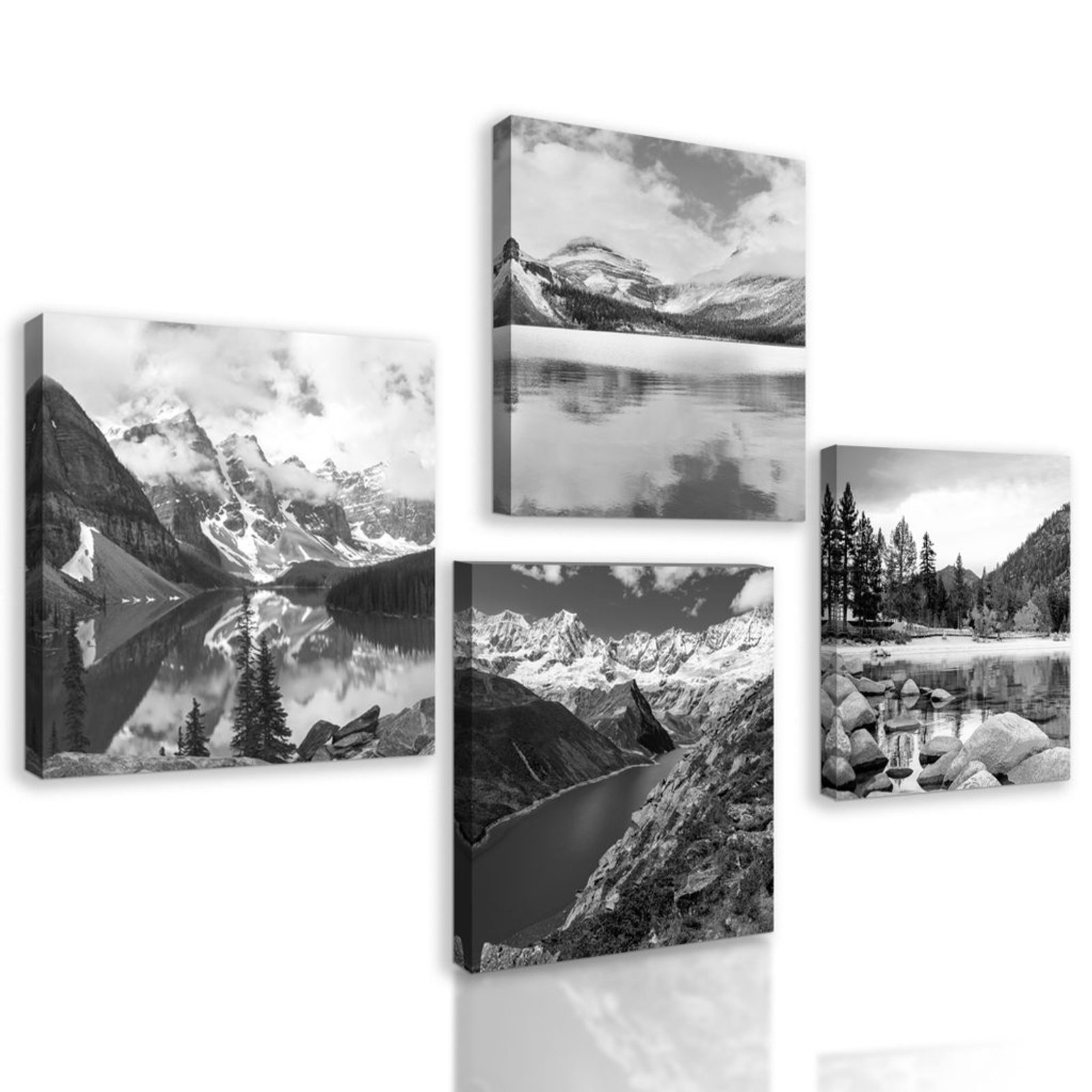 Képszett csodálatos hegyek fekete-fehér kivitelben