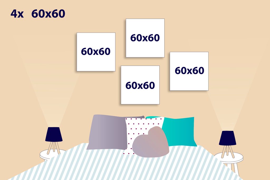 A fantáziának nincs határa, így a 4 képből álló szettet tetszés szerint elhelyezheti a falon. Számos lehetőség közül választhat, elrendezheti őket egymás mellett, felváltva, vagy egymás alá. Mindegyik készlet univerzális, így az egyes képek elhelyezését Önre bízzuk.