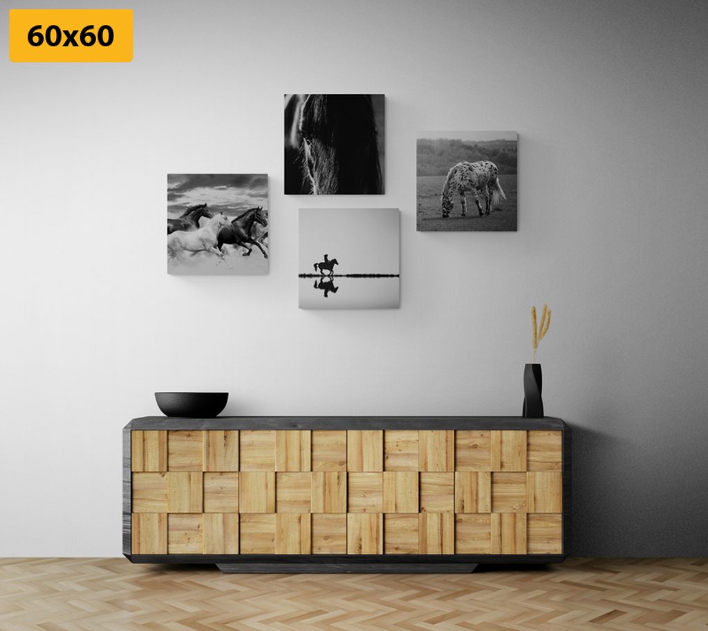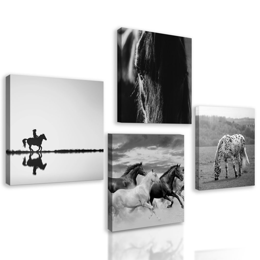 Képszett lovak fekete-fehér eleganciája
