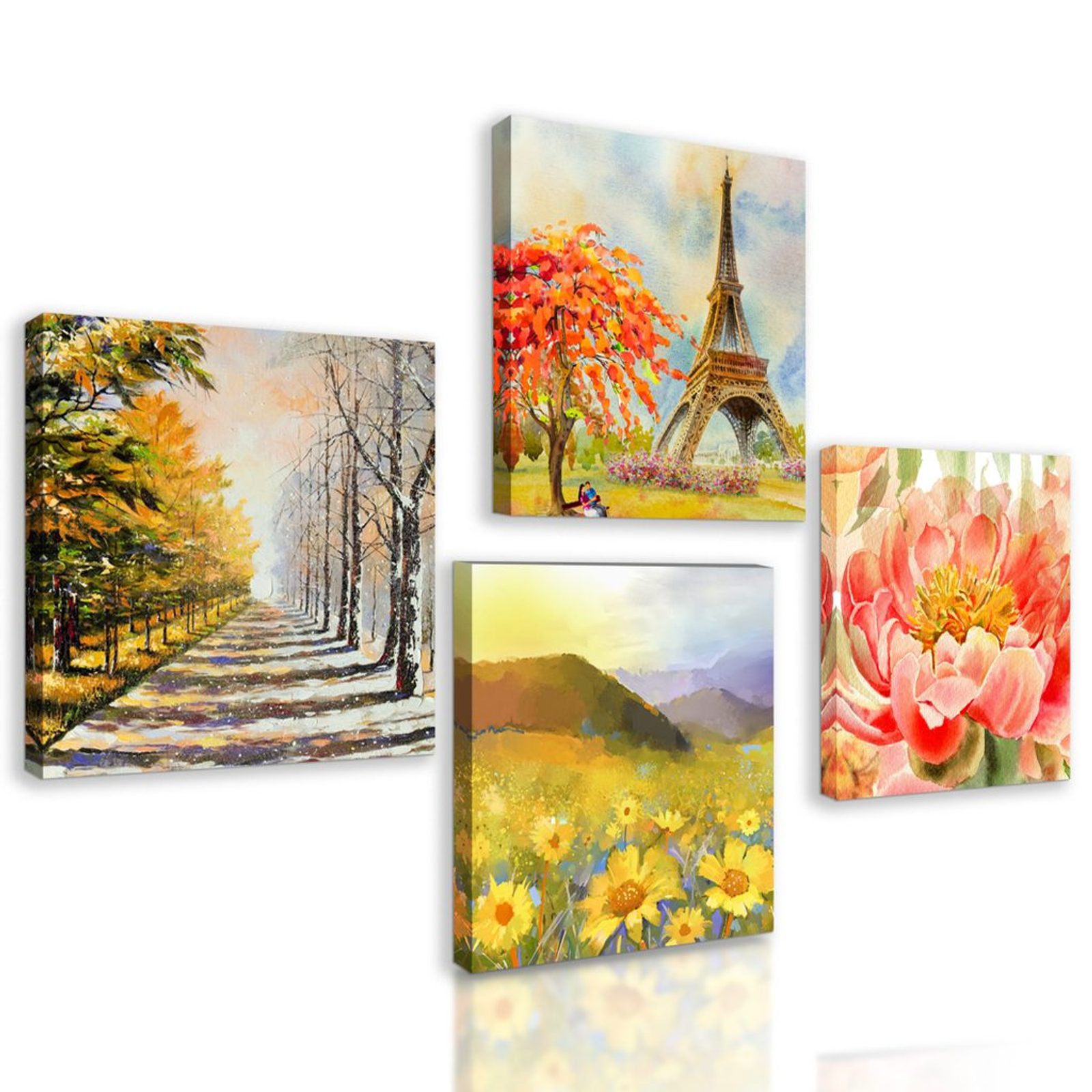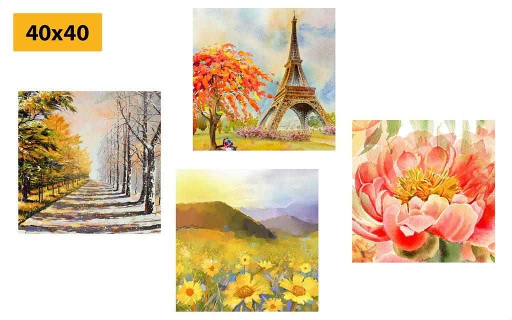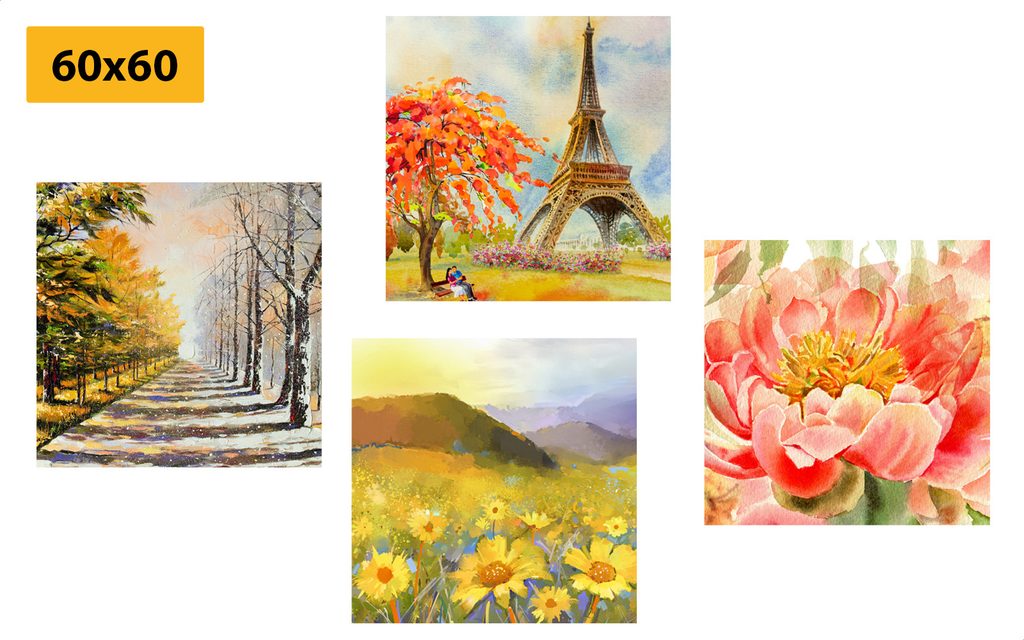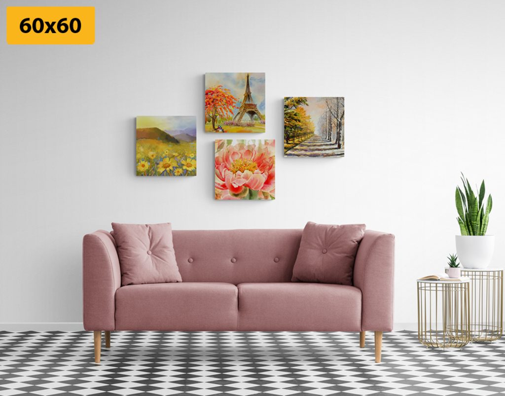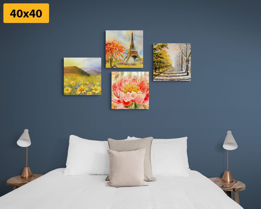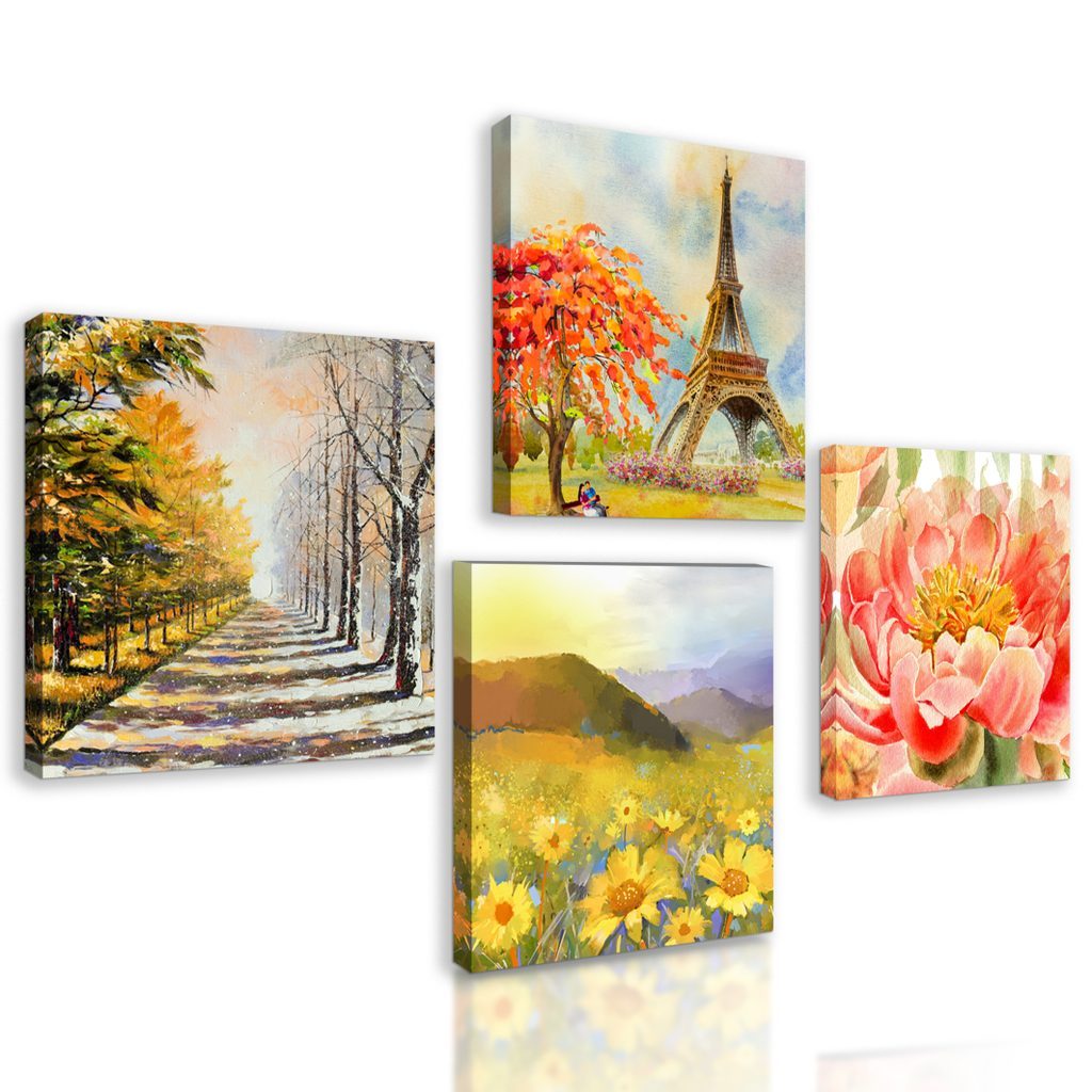 USP előnyök szettek Könnyű telepítés, Elhelyezhető saját elképzelés alapján, Négy kép hasonló árnyalatban és motívumokkal, Prémium vászon 280 g/m²