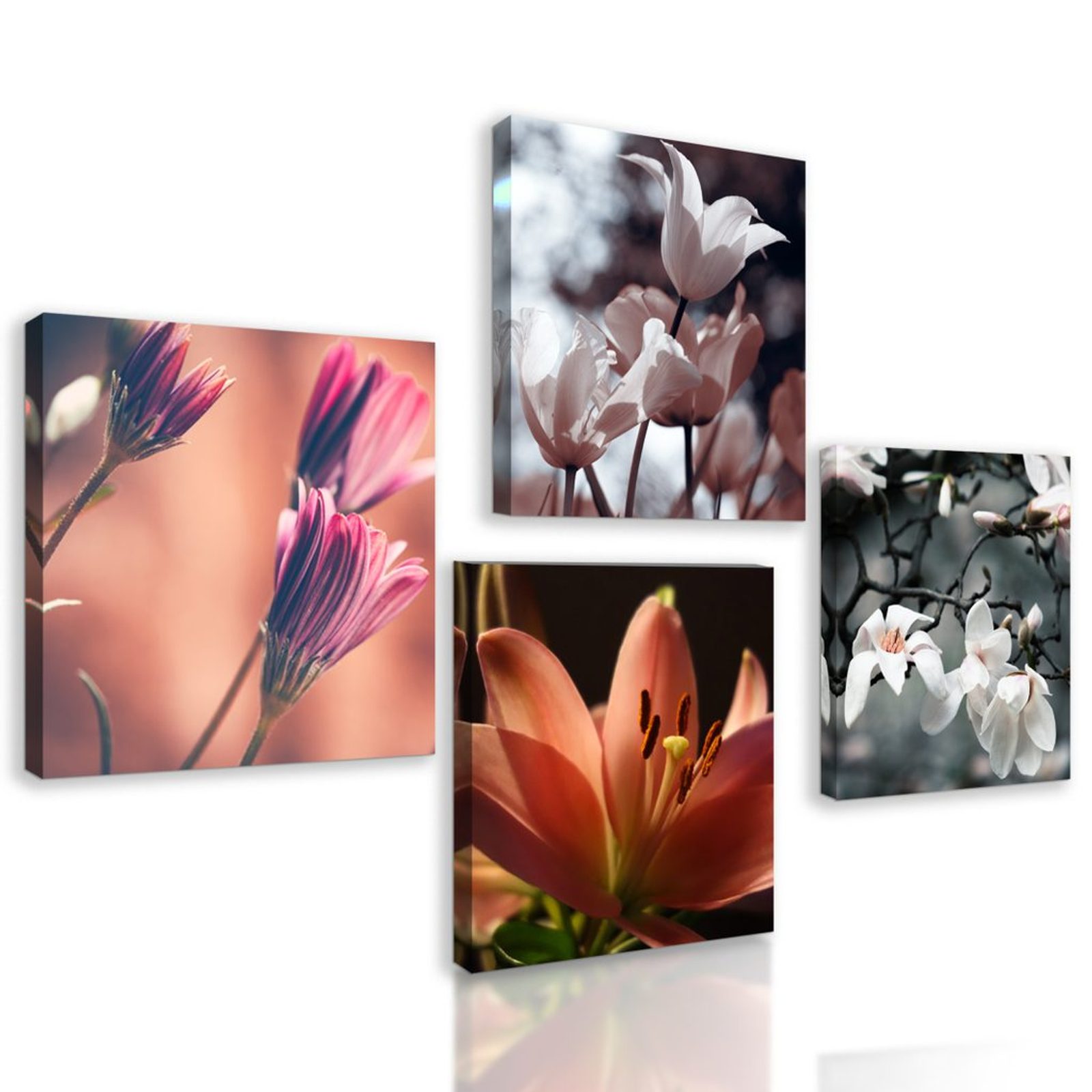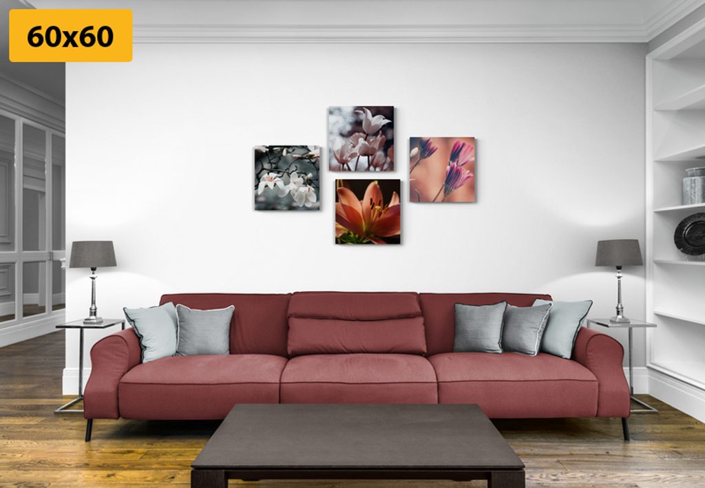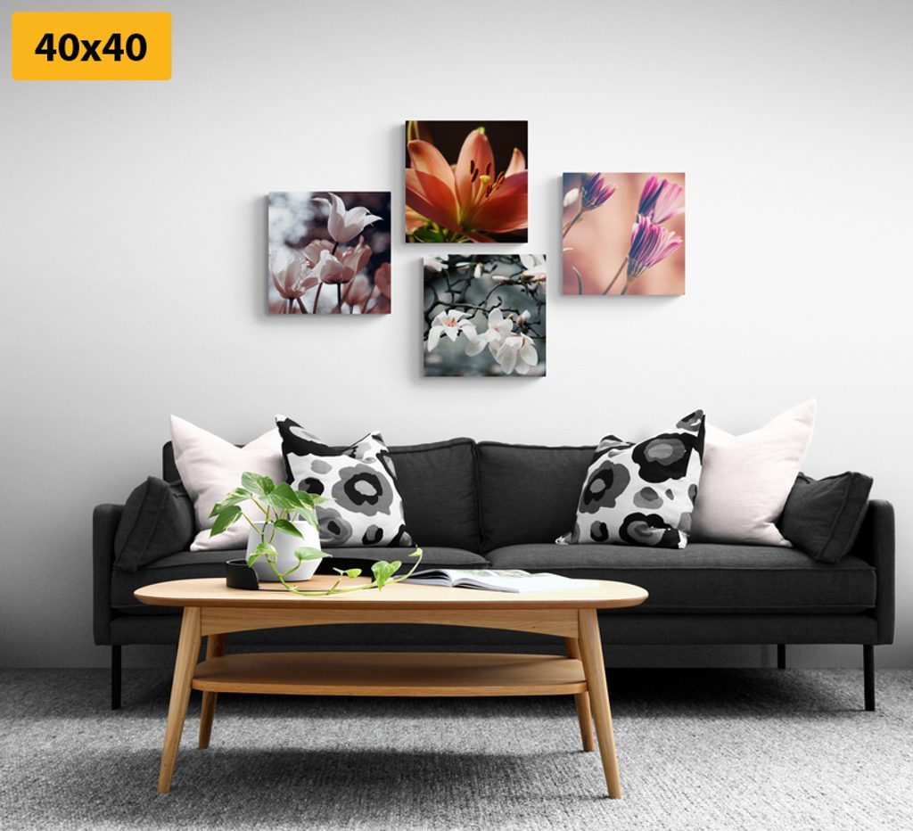 USP előnyök szettek Könnyű telepítés, Elhelyezhető saját elképzelés alapján, Négy kép hasonló árnyalatban és motívumokkal, Prémium vászon 280 g/m²
