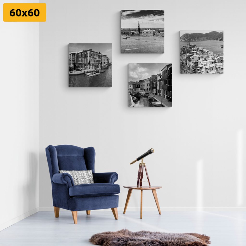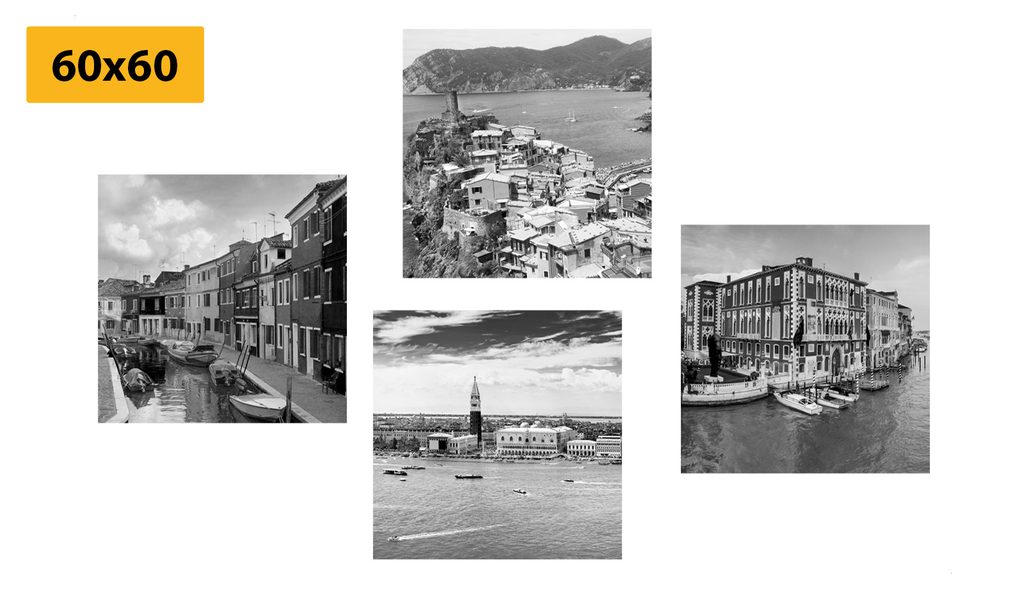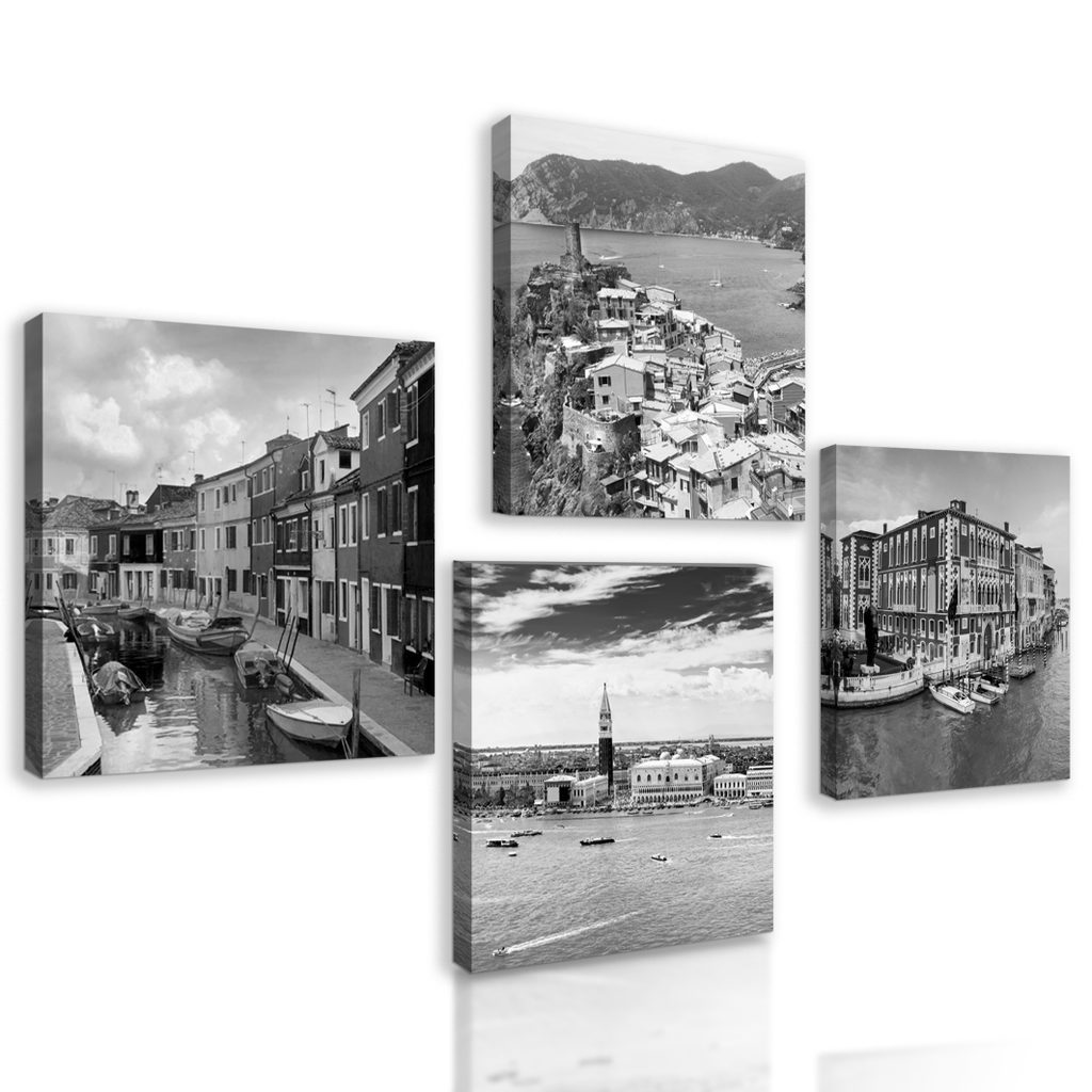 Képszett tengerparti városok fekete-fehér kivitelben