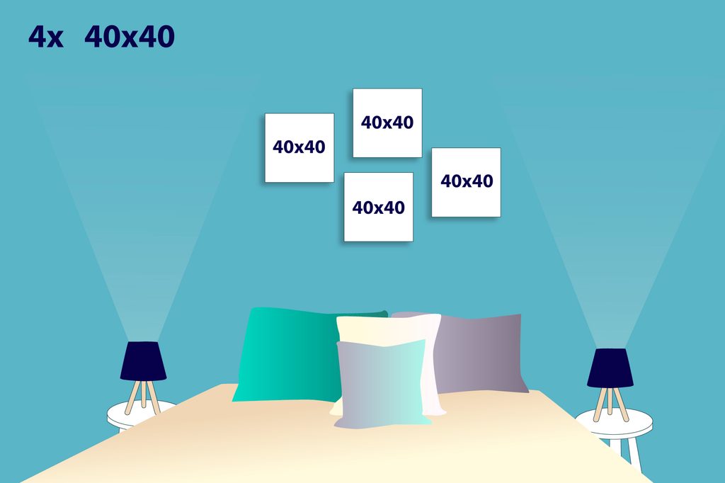A fantáziának nincs határa, így a 4 képből álló szettet tetszés szerint elhelyezheti a falon. Számos lehetőség közül választhat, elrendezheti őket egymás mellett, felváltva, vagy egymás alá. Mindegyik készlet univerzális, így az egyes képek elhelyezését Önre bízzuk.