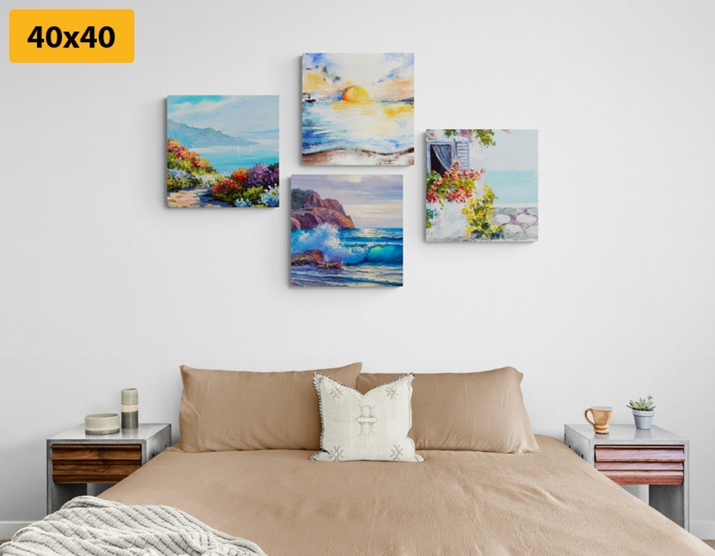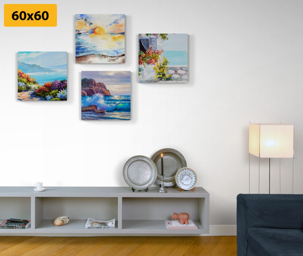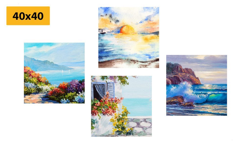 USP előnyök szettek Könnyű telepítés, Elhelyezhető saját elképzelés alapján, Négy kép hasonló árnyalatban és motívumokkal, Prémium vászon 280 g/m²