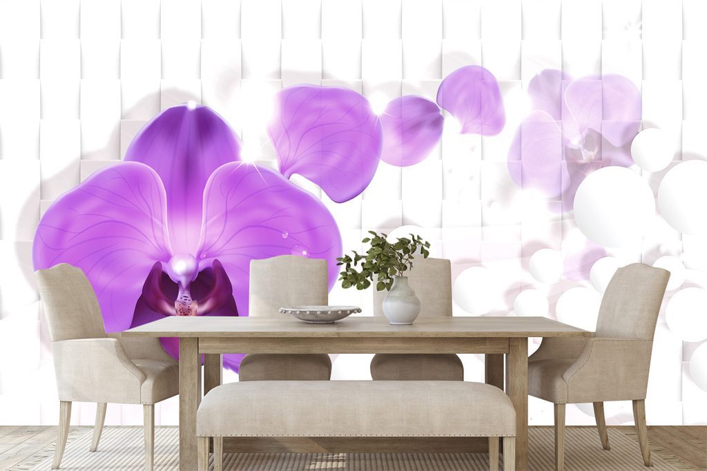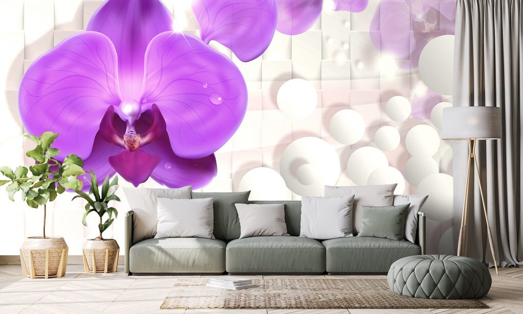 Lila orchidea öntapadó tapéta absztrakt háttérrel