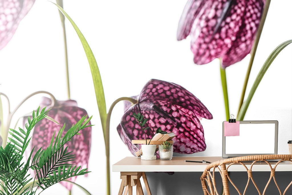 Lila színű öntapadó fotótapéta sakktábla virág