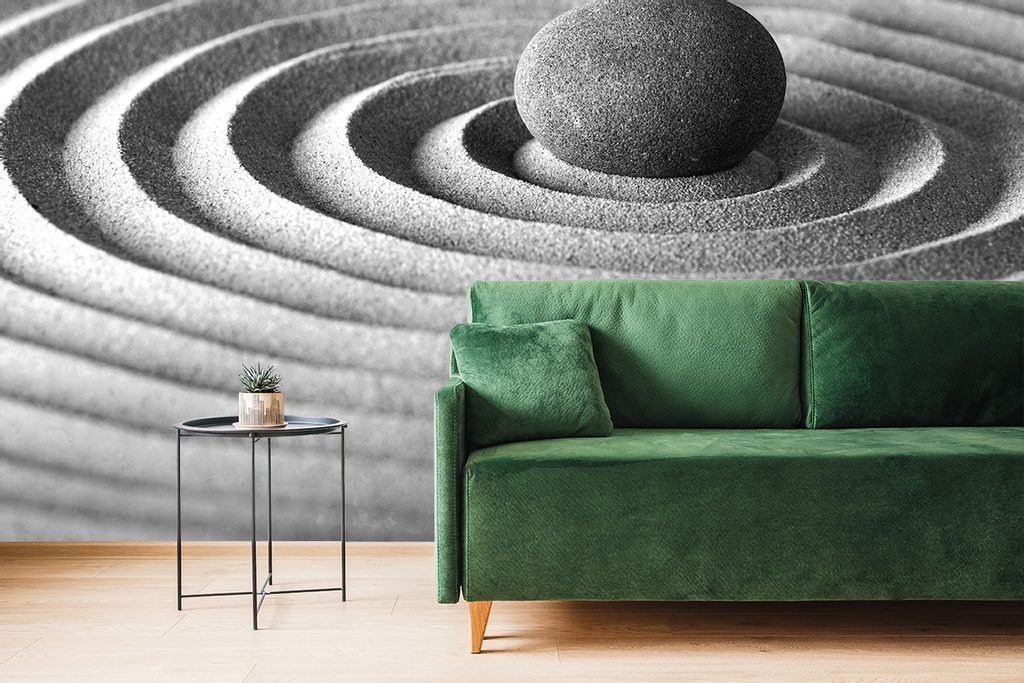 Nyugtató zen kő öntapadó fotótapéta fekete-fehér kivitelben