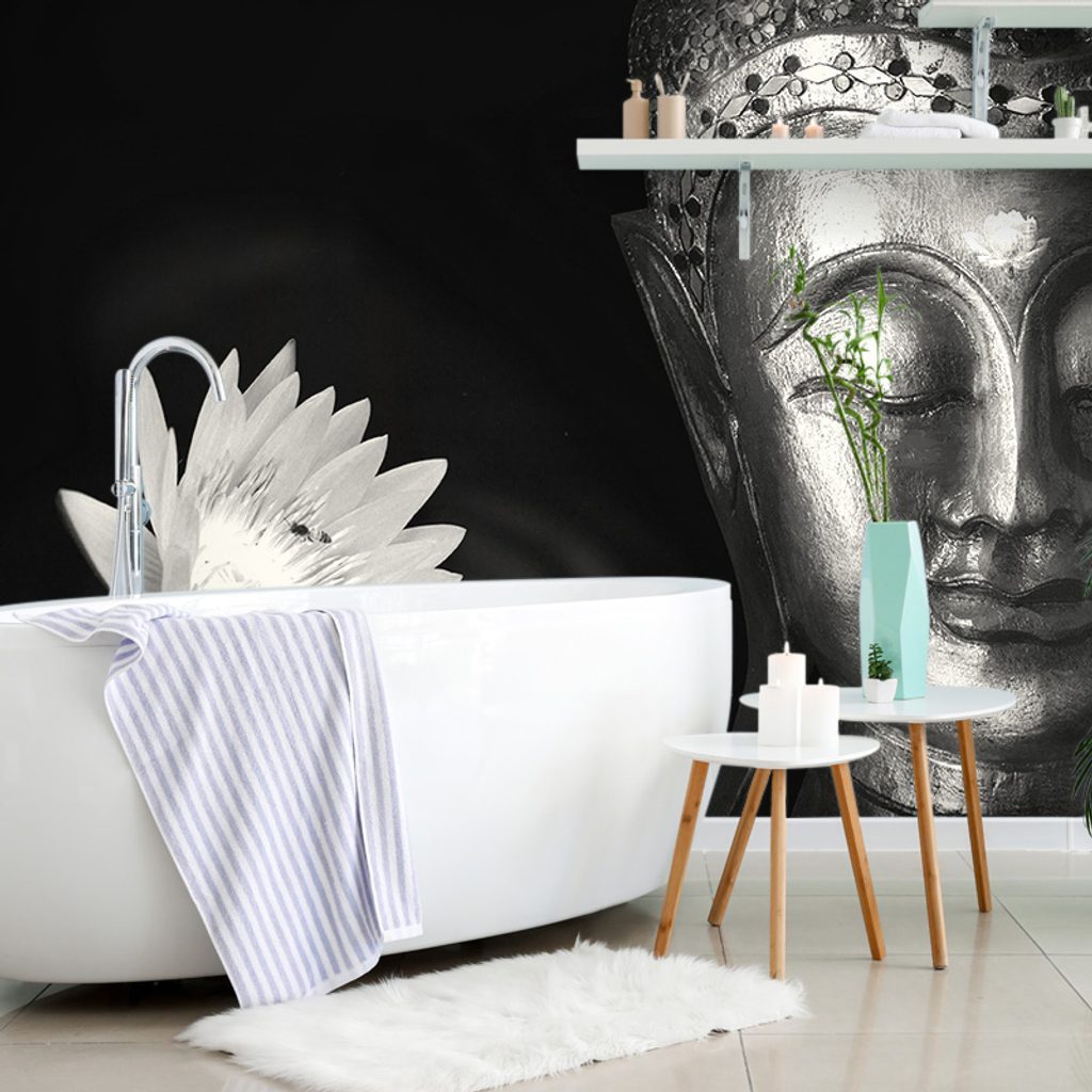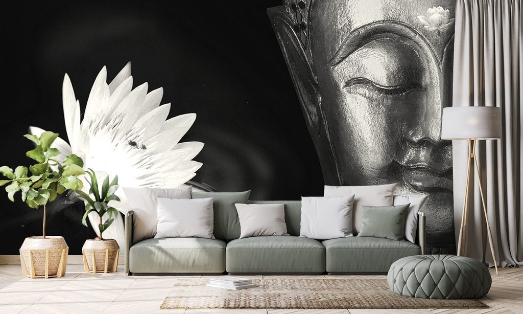 Öntapadó fotótapéta a csodálatra méltó Buddha fekete-fehér arca