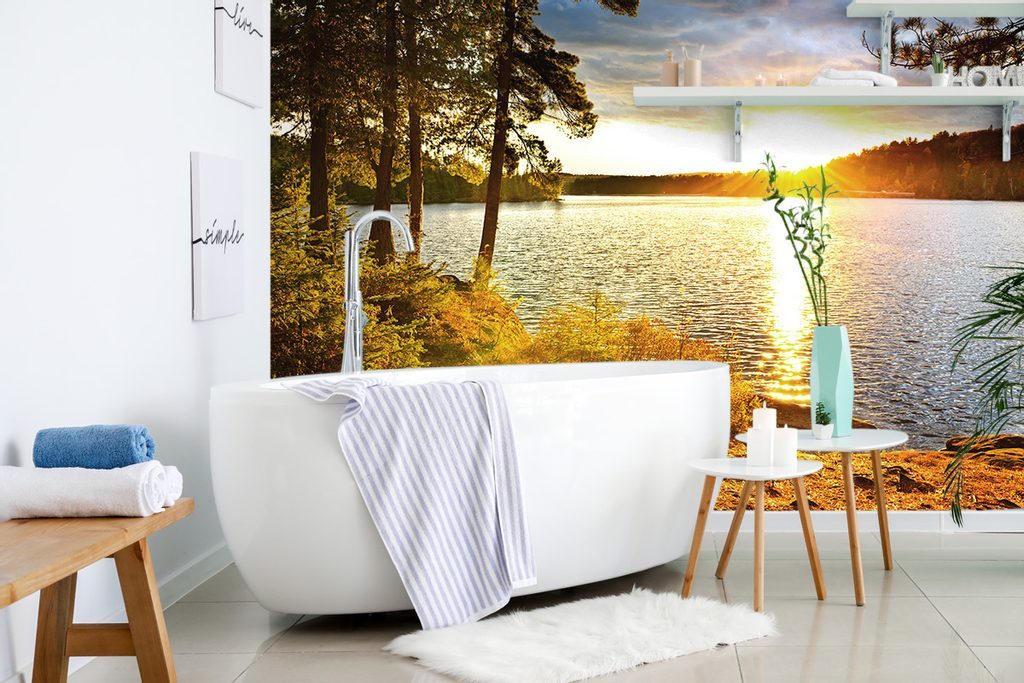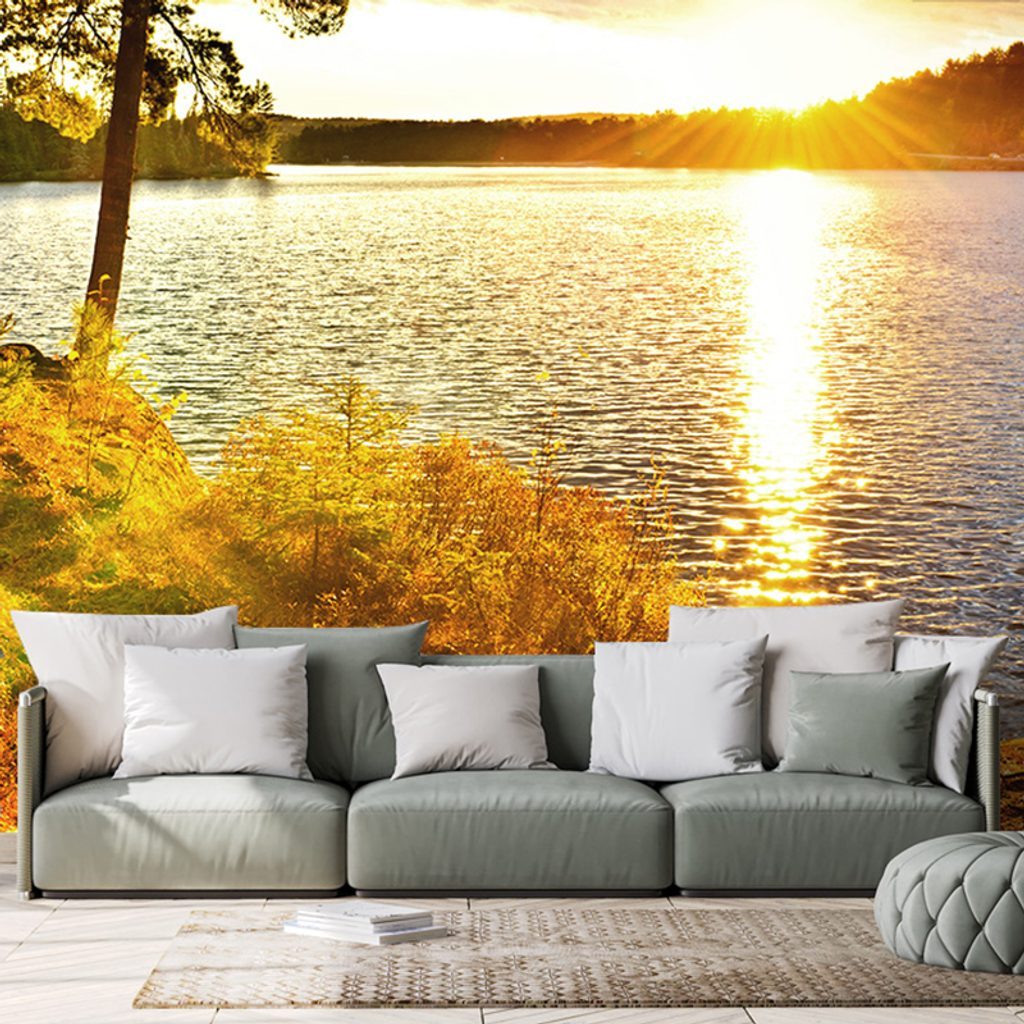 Öntapadó fotótapéta a lenyugvó nap varázslatáról a tó mellett