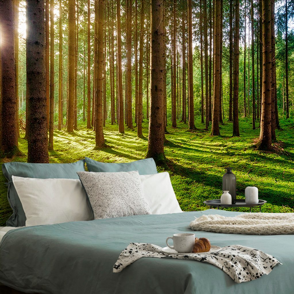 Öntapadó fotótapéta a reggeli erdő varázsa